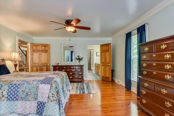 A rare Evans retreat--where history, craftsmanship, and privacy come together on 2.63 acres in the heart of it all. Tucked away yet incredibly convenient, this one-owner custom home offers something you simply don't find anymore. Built by the original owners using reclaimed materials, the property is rich with character--from old brick salvaged from historic chimneys to stunning heart pine floors over 100 years old. The main home, 2535 sqft, features 3 bedrooms and 2 1/2 baths, designed with warmth and authenticity throughout. The Dining room, hallway and Primary Bedroom showcase beautiful tongue-and-groove hardwoods, creating a warm and inviting atmosphere. Just beyond, step out on the screened in porch- an ideal place to unwind and take in the peaceful surroundings. Solid wood doors, walk-in attic space, and thoughtful construction details reflect the quality and care that went into building this home. Arriving at the property sets the tone--cross over the newly built wooden bridge and follow the private drive into your own secluded setting. It truly feels like country living, yet you're right in the center of Evans. Additional features make this property even more special: - Detached 2-car garage with a 600 sqft 1-bedroom apartment above --ideal for guests or a private office - Workshop located at the rear of the garage--perfect for woodworking, crafting, or hobby enthusiasts - Additional carport for covered parking and storage - HVAC updates: downstairs unit replaced in 2025, upstairs in 2021 What the owners have loved most is the privacy and tranquility--having space to spread out while still being just minutes from shopping, dining, schools, and everything Evans has to offer. If you've been searching for something truly unique with land, history, and versatility--this is it.