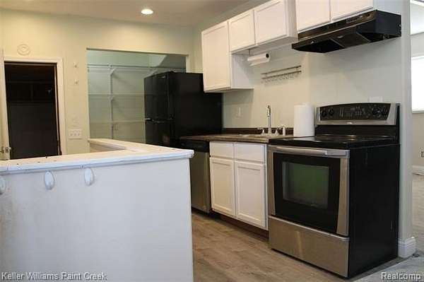 - Dishwasher, Free-Standing Electric Range, Free-Standing Refrigerator, Range Hood