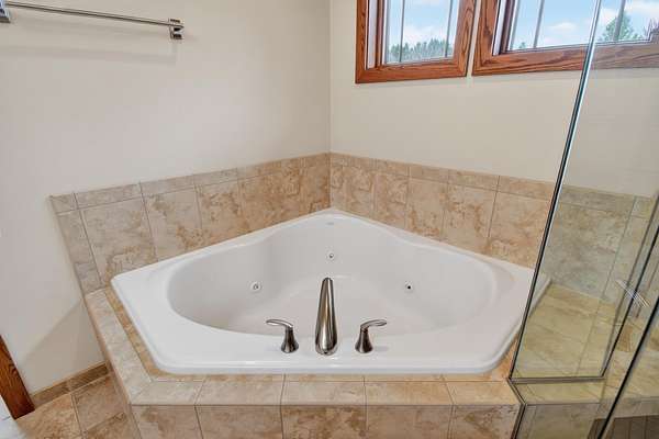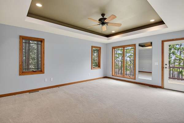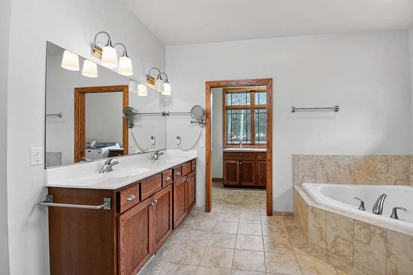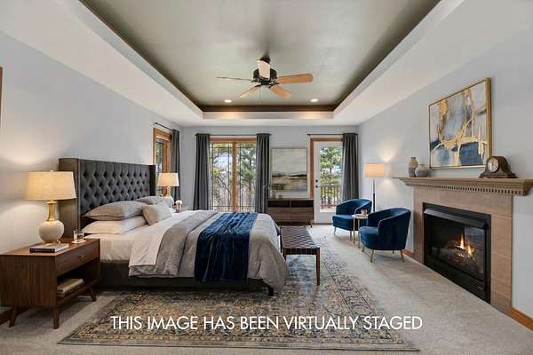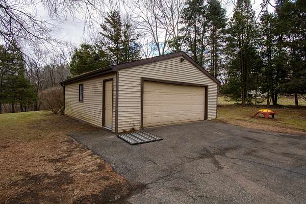 Tucked on 5 private acres backing Pleasantview Golf Course, this 3-bed, 3-bath home delivers space, privacy, and quality finishes throughout. The open main level showcases kitchen with cherry cabinetry, granite countertops, and stainless appliances with a living & dining area warmed by a gas fireplace. Deck off the main level overlooks an expansive, peaceful backyard. Primary with en suite, main floor laundry, and dedicated office add everyday functionality.Finished lower level features a family room with gas fireplace, 3rd bedroom, full bath, and walk-out to the backyard — ideal for guests or extended living. Two-car attached garage plus a two-car detached garage offers exceptional storage and workspace. A rare combination of acreage, privacy, and convenience. Room to breath, Room to grow.