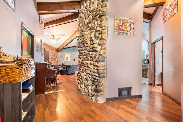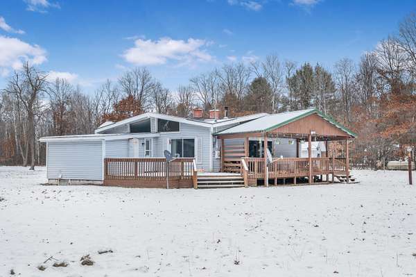 Discover your dream home, perfectly nestled just outside the charming city of Evart and minutes from Big Rapids. This one-of-a-kind architectural beauty is far from your typical home, offering a captivating design that will have you falling in love at first sight. The stone fireplace serves as the heart of this 3-bedroom, 1.5-bath home, radiating warmth and character throughout. An additional versatile room awaits your personal touch-ideal for an office, second living space, workout room, or even a fourth bedroom! Step outside to your partially covered porch, the ultimate spot for entertaining or relaxing while soaking in picturesque evening sunsets. With 3 acres of serene countryside, there's plenty of room to roam, garden, or just enjoy the great outdoors. A spacious 2-car detached garage adds both convenience and functionality. All this, and you're just a short drive from the amenities, shopping, and dining of both Evart and Big Rapids. Don't miss this opportunity to own a truly unique home that blends charm, location, and lifestyle!