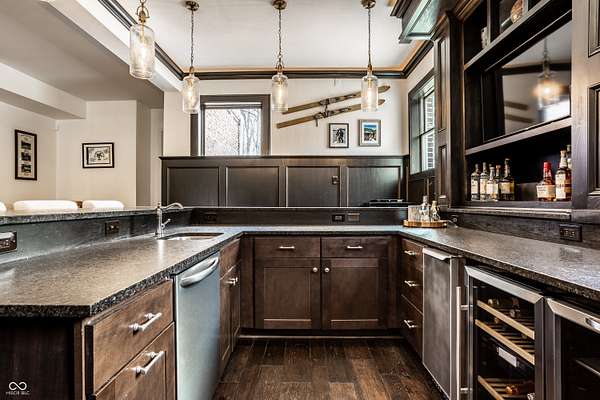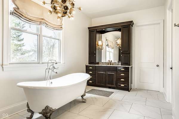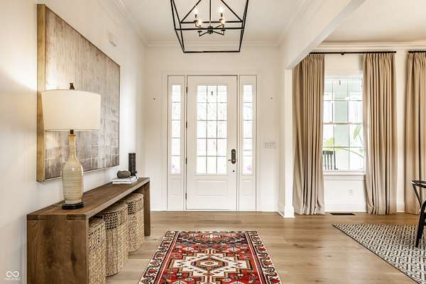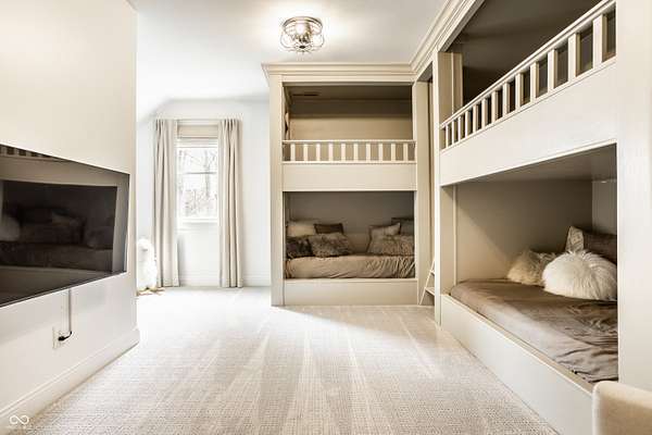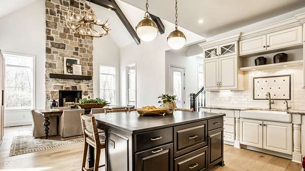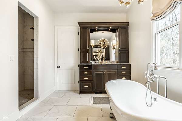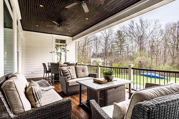 Known as "The White House on Main Street," this iconic and central Carmel estate offers 7,500 square feet of impeccably updated living space on nearly 2 breathtaking acres! This 5-bed, 5.5 bath efficient floor plan blends charm with luxury, featuring a classic wrap-around porch, a walkout basement, with a rare indoor sports court-perfect for year-round enjoyment. Inside, you'll love the flexible floor plan and high-end finishes throughout. The dramatic two-story family room with fireplace flows seamlessly into a gourmet kitchen and hearth room with vaulted ceilings and an additional fireplace ideal for both entertaining and everyday living. A versatile flex space just off the kitchen can be used as a second living area or office. The main-level primary suite is a true retreat, complete with a spa-like bath and a show stopper walk-in closet. Upstairs, you'll find four spacious bedrooms, each with access to full baths, plus a second laundry room for added ease and an additional flex space. Don't miss the additional room through the bunk room closet that can be used as a nursery or craft room. The walkout lower level is built for entertaining, offering a theater area, sunken bar, exercise room, and a well-designed bathroom and locker space. Recent updates include new flooring, countertops, a Wolf range, California Closets, window treatments, and designer lighting, making this home move-in ready. See full list of updates in Supplements! All of this in a prime location-just minutes from everything Carmel has to offer: top-rated schools, shopping, dining, and more. This is a rare opportunity you don't want to miss!