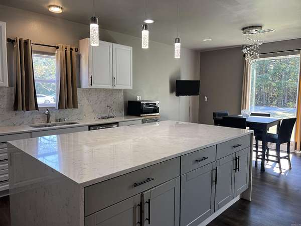 Welcome to this spacious and versatile brick home offering four bedrooms, two full baths, and a fantastic bonus room upstairs currently being used as a game room. The main level features a large eat-in kitchen with an oversized island, breakfast bar, and ample cabinet space, perfect for gatherings and everyday living. A separate dining room adds a touch of elegance, while the large living room showcases beautiful chandeliers and plenty of space for entertaining. The enormous master suite is a true retreat, complete with a garden tub, beautifully tiled shower, and big walk-in closets. A dedicated office provides the flexibility to serve as a fifth bedroom if needed. The large laundry room offers abundant storage, making household tasks easy and efficient. Outside, you'll find even more to love -- an additional home of nearly 700 square feet that's ideal for guests or a mother-in-law suite. This secondary home includes two bedrooms, one full bath, window units, and a kitchen/living room combo. For the hobbyist or professional mechanic, there's also a separate workshop equipped with a hydraulic lift. This property truly has it all.