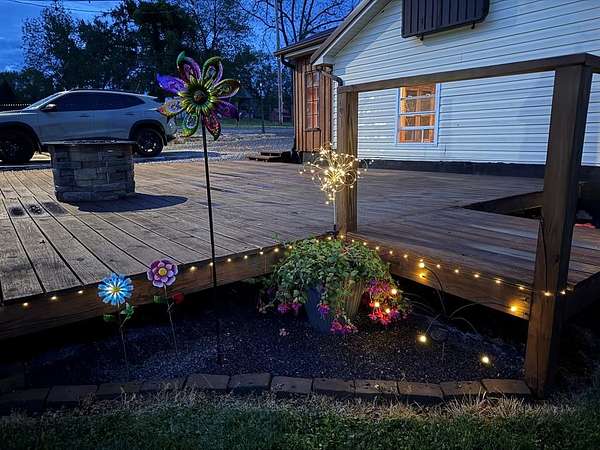 - Deck/Patio, Gravel Drive, Gutters, Private Yard, Storm Door(s)