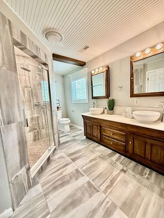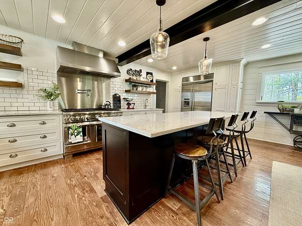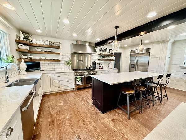 Welcome to a breathtaking retreat where luxury, craftsmanship, and nature meet. This fully renovated estate sits on a pristine 3.5-acre lot, offering ultimate privacy, beauty, and comfort. Step through stunning original stained glass and wood doors into a grand foyer flooded with natural light, setting the tone for the custom details found throughout. Hardwood floors, custom tile work, restored finishes and climate controlled work shops and hobby areas for all enthusiasts. Once a very successful Airbnb this homes details are unmatched. Inside, the gourmet chef's kitchen features high-end Thermador and Jenn-Air appliances, elegant quartz countertops adorn a large center island, and custom cabinetry and finishes built for both entertaining and everyday living. Adjacent, are two different enclosed sitting rooms overlooking the peaceful woodlands - a perfect year-round escape. The home boasts 4 spacious bedrooms, 4 custom bathrooms with each of their own unique styles and finishes, a private office, and multiple inviting porches designed for relaxing and enjoying the natural surroundings while entertaining friends and family. Outside, the property continues to impress with exceptional amenities: A custom-built 36' x 70' workshop featuring a climate-controlled wing, concrete floors, loft storage, and a built-in hoist, ideal for hobbies, events, or serious projects. A rustic luxury 1800's log cabin onsite, adorned with handcrafted wood furniture - perfect for guests, a creative studio, or cozy retreat. This estate offers a rare combination of luxury living and functional space, whether you're seeking a family home, a country escape, or an investment opportunity.