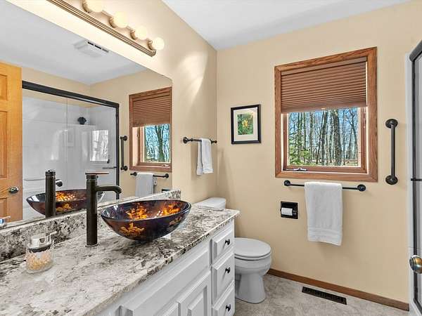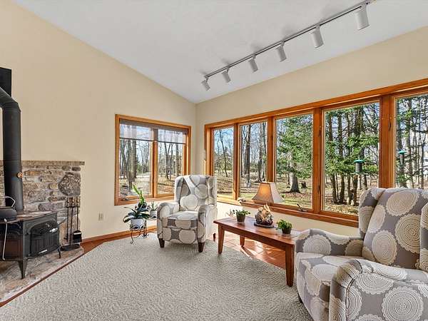 Est $3,550/moExperience the privacy and natural beauty of Whitefish Point from this distinctive saltbox-style home on sought after Glidden Drive. Nestled on 1.56 wooded acres with beautiful views of Lake Michigan and deeded access to the the sandy beach, this property offers a rare chance to enjoy the best of Door County. Vaulted ceilings, granite countertops, custom cabinetry, and a floor to ceiling natural stone wood burning fireplace with heatilator add warmth and timeless appeal. The glass enclosed year round sunroom creates a stunning connection to the surrounding woods and changing seasons, while protected preservation land behind the home ensures exceptional privacy, peace and natural beauty.