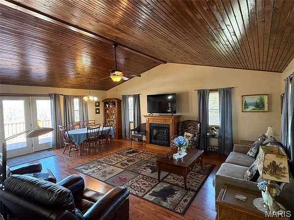 Looking for that home with a rural setting and additional acreage? Take a look at this jewel of a property! Located just a couple hundred feet off of the shore of Mark Twain Lake. This is just about as close as you can get, perched on the top of the ridge. Corp of Engineers property adjoins the property on two sides. This home is set up for ultimate enjoyment, as well as relaxation. With a full length composite deck on the back main level, you can relax in the morning and evenings with family and friends. If you are into campfires and barbeques, then the lower level patio area is sure to please. The home features a downstairs bedroom and bathroom, plus another non-conforming bedroom and storage and utility room. On the main level you will love the open concept, with cathedral ceiling and fireplace in the living room. A modern kitchen with stainless appliances that will all convey with the property. Master bedroom and bath are also on the main level, with access to the deck. There's also a sun room that invites the sunlight in through the south facing windows for those cold mornings, just off of the bedroom. Main floor laundry is also a bonus. There's an attached 24x15 garage for the primary vehicle and a detached 30x35 metal building with overhead doors and full concrete and electric, that provide extra storage for the truck and other toys. Outside there's a small orchard that features 2 pear trees, an apple tree and 2 peach trees. All produce abundant fruit. Deer and turkey are also abundant, with hunting just out the back door. With 13 acres of pasture and fencing on 3 sides, there's a blank canvas for endless opportunities. Come take a look at a property that just doesn't come along that often in the mark Twain Lake area. You're sure to like what you see.