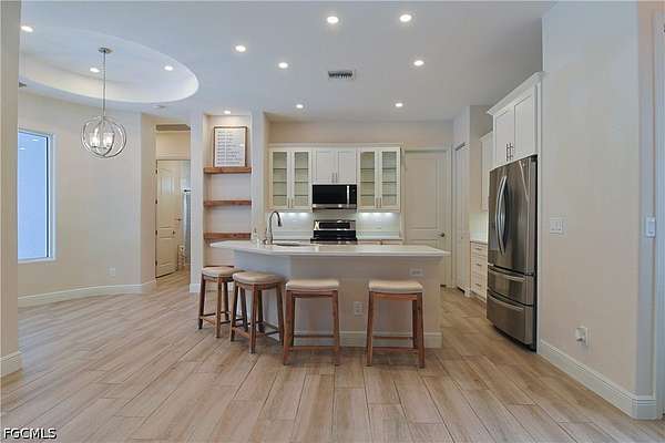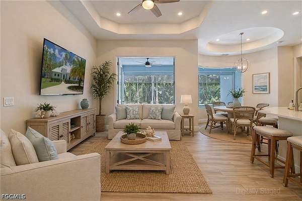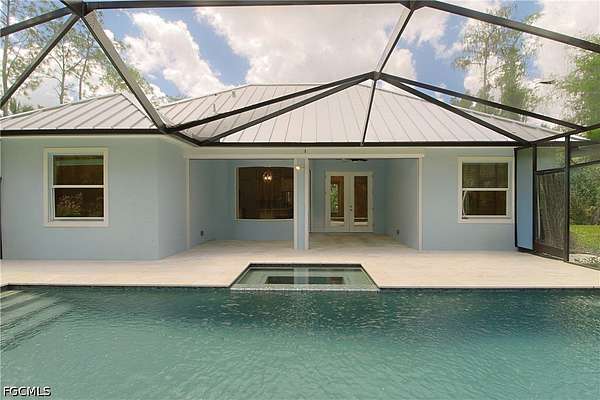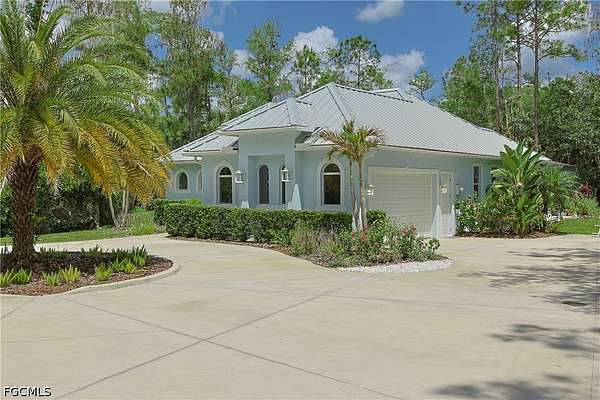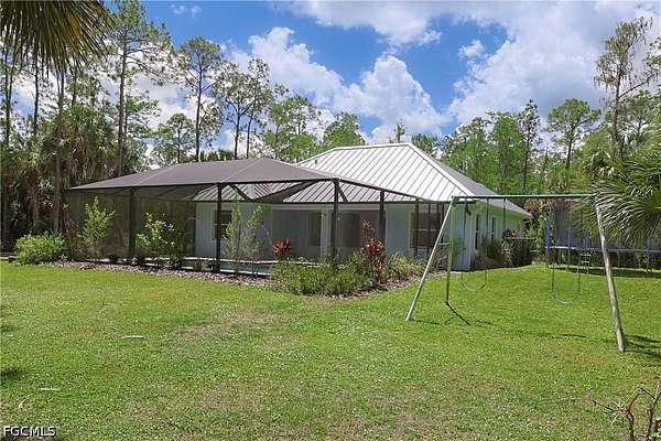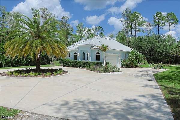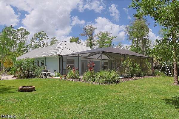 Discover your own private oasis in this 2018 custom-built estate, perfectly situated on a sprawling 2.73-acre gated lot. Whether you are looking for a serene retirement sanctuary, a seasonal getaway, or a permanent residence, this cottage-style home offers the perfect blend of modern sophistication and ultimate security. Step inside to a bright, airy floor plan, featuring tall tray ceilings and expansive windows that bathe the home in natural light. The split-bedroom layout ensures maximum privacy, complemented by high-end finishes including: Flooring: Timeless porcelain wood-plank tile throughout. Gourmet Kitchen: Pristine white shaker cabinetry, premium quartz countertops, an oversized social island, and high-performance LG stainless steel appliances. Water Quality: Peace of mind with an advanced whole-home Reverse Osmosis filtration system. The Ultimate Outdoor Retreat with the backyard is a masterclass in Florida living. Relax by the stunning 15x33 pool and spa built in 2023, featuring shimmering glass tiles and a premium screen enclosure. Automation with Fully controlled via Pentair equipment and the Aqualink remote or via app on your phone. You'll love the ambiance color-changing lighting, elegant deck jets, and luxurious Royal Marble decking. Professionally landscaping upgraded with St. Augustine sod, new irrigation, and integrated side-yard drainage. Fortress-Level Construction & Security Built to exceed expectations, this home remained completely undamaged by Hurricane Ian due to its heightened elevation and superior protection: Impact-Rated: Full impact windows and doors, plus an electric hurricane shutter system on the lanai. The durability of the Long-Lasting metal roof and energy-efficient spray foam insulation. Privacy and secured by a sophisticated $50,000+ custom fence and gate system. Space, Freedom & Location with no HOA fees or restrictions, you have the freedom to truly make this estate your own. Storage galore with A 300-foot+ driveway leads to a 2-car garage with epoxy flooring, offering ample room to park your RV or boat. Plenty of acreage remains to build additional structures or expand the square footage of the existing structure. Lifestyle and amenities located just 2 minutes from Big Corkscrew Island Regional Park, this 150-acre regional park features the county's largest playground, a massive aquatic complex with waterslides and competition pools, and a 22,641-square-foot community center. Visitors can also enjoy an event lawn with a stage alongside extensive sports facilities, including courts for pickleball, tennis, and basketball, plus multiple turf fields and softball diamonds.