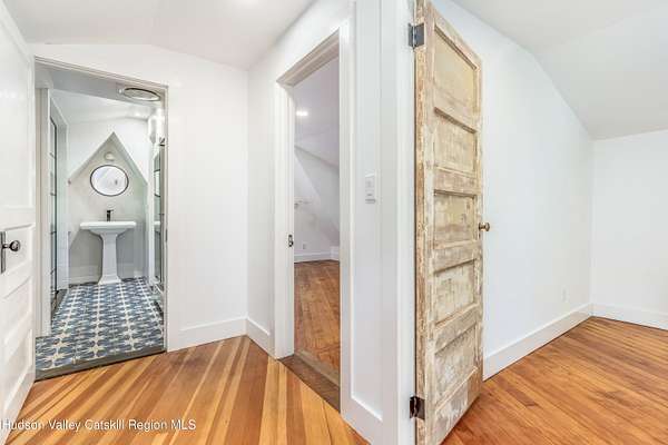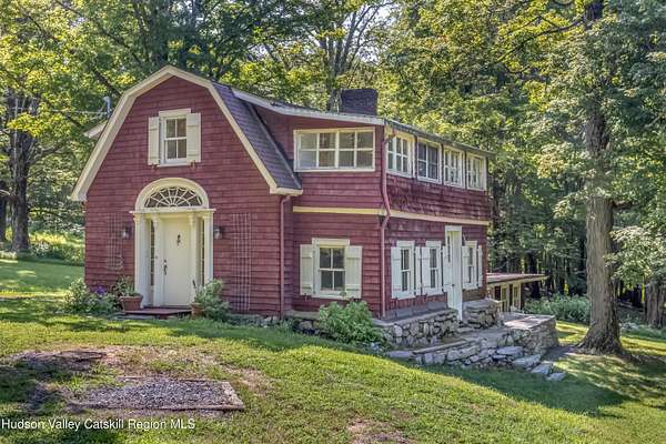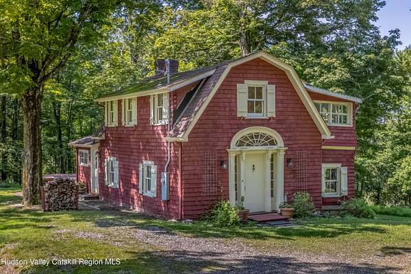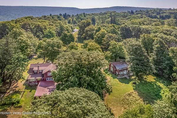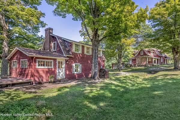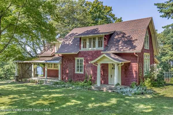 This 4-bedroom 2 bath main house, and 3-bedroom 1 bath cottage are located on 4.5 wooded acres with scenic views in the historic artists' hamlet of Cragsmoor, located on a ridge in the Shawangunk Mountains. The community is encircled by 24,000 acres of lands protected by the Minnewaska State Park Preserve with Sam's Point Preserve minutes from the property. The main house was built in 1907 by the architect Frederick Dellenbaugh for the artist Carroll Butler Brown and named the Falcon. Its living room is of chestnut post and beam construction with a chestnut staircase to the second floor, and a lovely working stone fireplace. Also on the first floor is a formal dining room, office area, kitchen, full bath and mudroom. The second floor has 4 bedrooms and a full bath. There are hardwood floors throughout. There is a basement with a laundry room and mechanical room that opens to a two-car garage. The cottage is equally full of charm fully renovated in 2021 with a working stone fireplace in the living room that flows into the kitchen with doors to a patio on one side and stone terrace on the other. Also on the first floor is a room suitable for a small bedroom or office. The second floor has a full bath, 2 bedrooms and a 3-season sleeping porch. In addition to wealth of nature, the property is centrally located for enjoyment of the cultural and culinary richness of the Hudson River Valley, while being an hour and forty-five minutes from New York City.