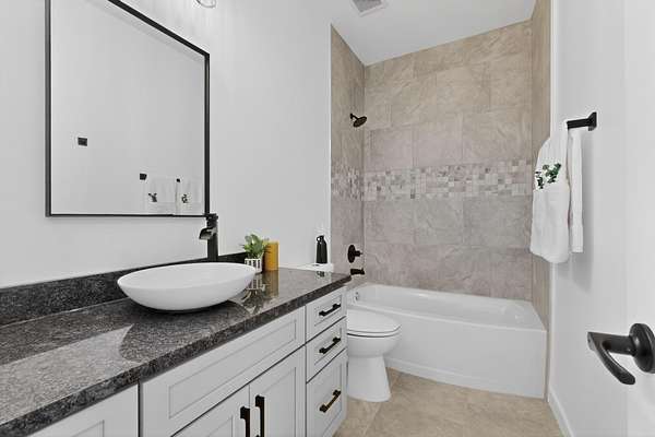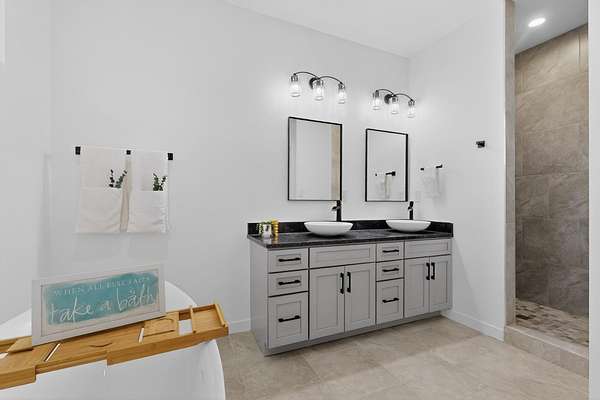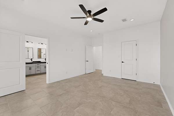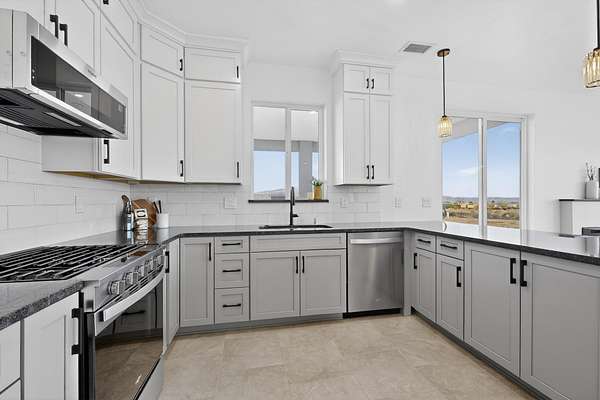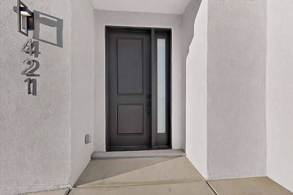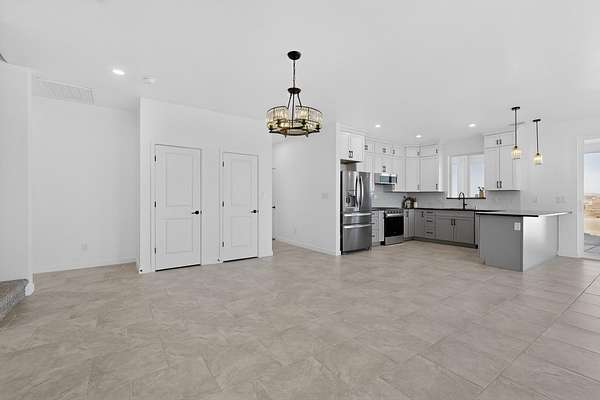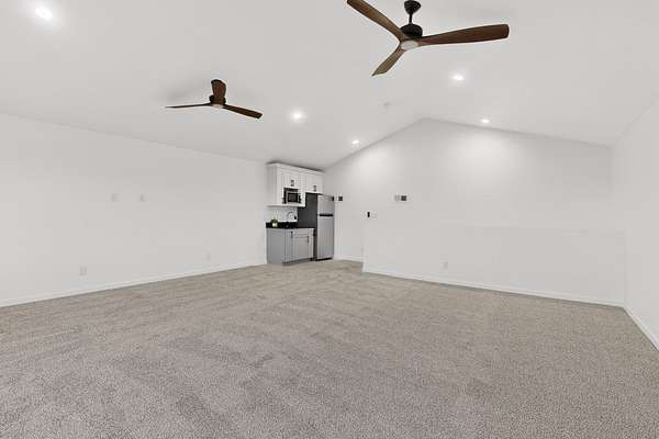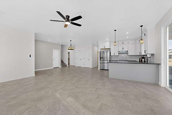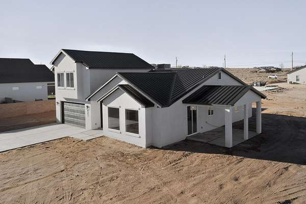 Brand new custom home on a spacious 0.5-acre lot offering 4 bedrooms, 3 bathrooms, and a flex space! This modern new build features a striking two-tone exterior, metal roof, and abundant natural light throughout. The open main living areas showcase high-end finishes including soft-close dovetail cabinetry, sleek hardware, and a well-appointed kitchen ideal for everyday living. Package stainless steel appliances convey! Large windows frame open views and fill the home with light. The primary suite offers a spa-like retreat with dual vanities and contemporary finishes. A separate recreation room includes a kitchenette with refrigerator and microwave, providing additional living or entertaining space. Two exterior patios and backyard access for any toys! No HOA or PID.