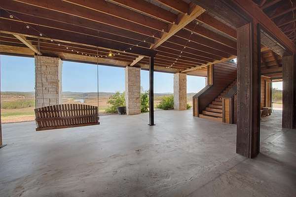 Enjoy stunning panoramic Lake Travis views from the upstairs East facing covered patio. This one owner custom lake house features an oversized covered patio with plenty of outdoor living space and concrete floor. The adjoining lot to the right is the 9.36 acre HOA park and boat ramp for the subdivision. Chimney Cove Estates is located between Marble Falls and Lago Vista and approximately a 20 minute drive to Marble Falls. Additional highlights include a large attached covered carport, two large garage bays and a water well. House has also been outfitted with an elevator shaft.