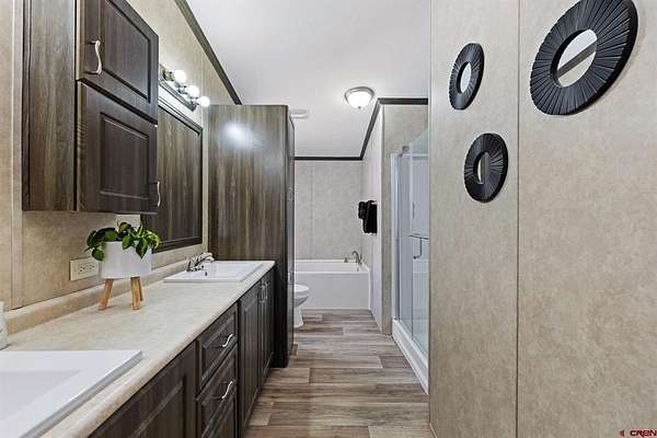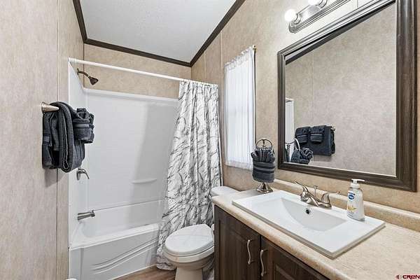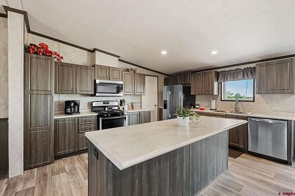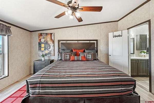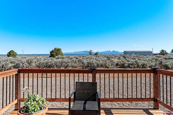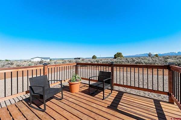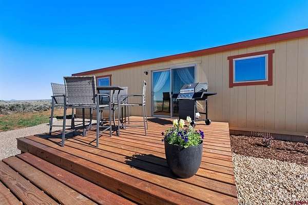 Ashley Kerlin, The Wells Group of Durango, LLC, C: 970-880-4456, ashleyk@wellsgroupdurango.com, www.crenmls.com: Located just 20 minutes from Durango, this 3-bedroom, 2-bathroom home sits on 1.58 private acres with wide-open La Plata Mountain views and plenty of room to breathe. Built in 2022 and well cared for, the home is move-in ready and comes fully furnished. The open living area connects to two outdoor decks, providing space to entertain or enjoy the quiet setting. The primary bedroom is set apart and includes a large bathroom with dual vanities, a soaking tub, a separate shower, and a spacious closet. Two additional bedrooms and a full bathroom are located on the opposite side of the home, offering privacy and flexibility. The kitchen features ample counter and cabinet space with island seating, along with a separate laundry room just off the kitchen. The property is on central water through the La Plata West Water Authority and has been a successful short-term rental. With no HOA or covenants, you'll have the freedom to use the land how you want. A short drive to Fort Lewis Mesa Elementary school and close proximity to town amenities, this property offers privacy, views, and room to live your lifestyle.