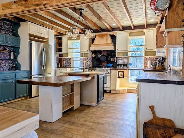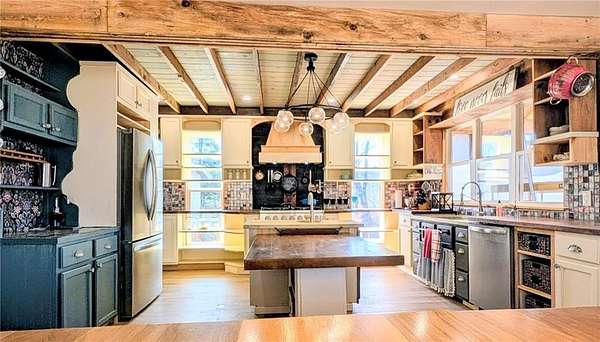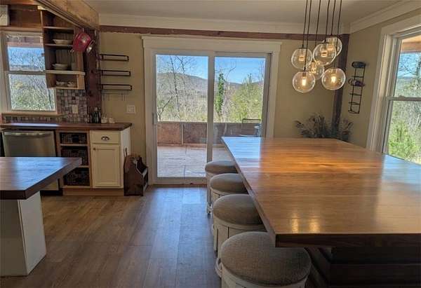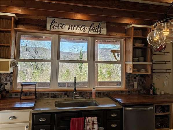 This 16-acre homestead is located on a high ridge of Lookout Mountain with 360 degree mountain range views on the Alabama border. The home features two floors complete with separate living areas and kitchens. A GIANT wraparound porch welcomes you into the homes parlor which showcases original exposed wood piers and a custom staircase. The parlor doubles as a home office. The master bedroom on main has a walk-in closet and stone tiled steam shower. The family room is open concept to dining and an immaculate kitchen featuring wood countertops, commercial luxury grade 6-burner gas range with pot filler, a coffee bar with instant hot water dispenser, an extra deep scratch and dent resistant sink plus an additional prep sink in the island. The adjoining mudroom serves as a walk-in pantry and laundry leading to the side porch equipped with HOT and COLD water for an outdoor bathtub with mountain view sunsets and stargazing! The beautiful staircase takes you up to the second level into the game room featuring a separate 4-bunk area and walk-in closet. The butler's pantry leads you into the second kitchen and living area. The adorable kitchen provides ample storage with open shelving, a full size range and microwave hood, refrigerator, and bar seating. Two additional bedrooms one with walk-in closet. EVERY room in this house has incredible mountain range views with fiberoptic internet and excellent cell service. The homestead area consists of approximately three acres complete with two sheds, one for outdoor storage. The larger shed was previously used as an office complete with LVP, drywall, electricity and a wall unit for heat and air. A small stable adjoins a chicken coop at the entrance to the fenced pasture which previously held goats and donkeys. The yard holds a fruit basket of peaches, pears, persimmons and apples! Additionally you'll find blackberries, blueberries, grapes and muscadines throughout the property. The remaining acreage features prime hunting property with shooting lanes, deer blinds and active tree stands. Trails throughout and of an abundance of wildlife. A portion of the acreage is across the street offering generous road frontage with potential use for cabins, RV parking, etc. Dogwood lane is a dead end road. **there is a large unfinished sunroom off the main kitchen with a cathedral ceiling. It is currently under construction with flooring already purchased matching the kitchen. It does still need windows and drywall. The property is being sold with the sunroom in as-is condition. *Please note, some punch items remain incomplete.