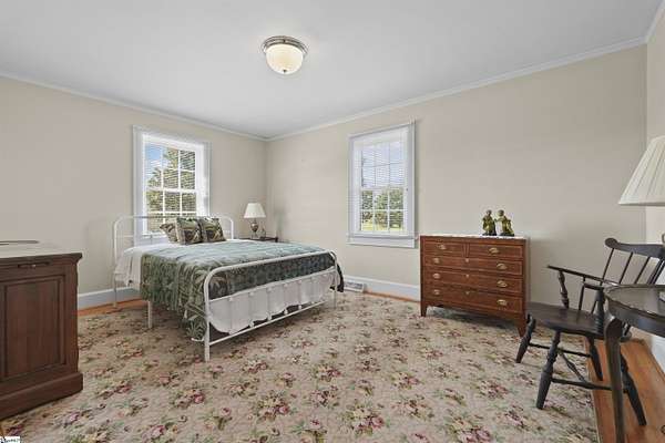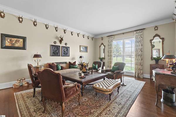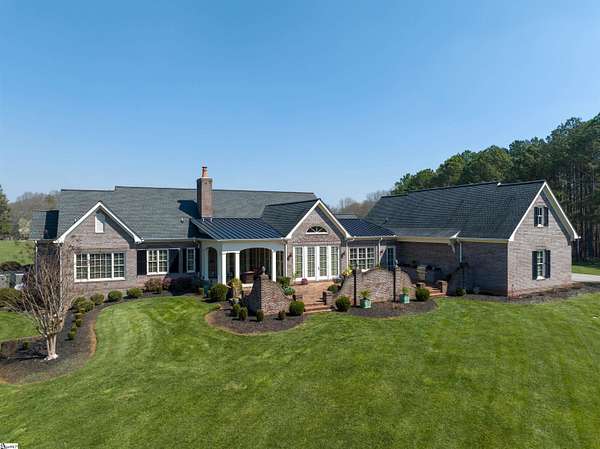 Welcome to an extraordinary 39.8-acre legacy estate in the heart of Easley -- a rare and unique property featuring three impeccably maintained residences, each with private utilities and separate driveways. Perfectly suited for multi-generational living, guest accommodations, or income-producing opportunities, this remarkable property blends luxury, privacy, and versatility across acres of beautifully preserved land. Introducing 417 (The White House), 421 (The Main Residence), and 423 (The Brick Home) E Church Road. At the center of the estate stands the custom-built primary residence, completed in 2007 and thoughtfully designed with timeless sophistication. A private, tree-lined drive leads to a stately circular entry. Inside, a custom wood door opens to a grand foyer illuminated by an elegant chandelier, with rich hardwood floors flowing seamlessly throughout the main level. The formal dining room is adorned with tall windows, designer drapery, ornate wallpaper, and a dedicated china and silver closet. The chef's kitchen is the heart of the home, showcasing custom cabinetry, dual freestanding islands--one for preparation and one for gathering--premium appliances, and a warming drawer. A fully equipped second kitchen and laundry area provides exceptional functionality for entertaining, canning, or extended stays. A private office with floor-to-ceiling built-ins provides the perfect work-from-home retreat. The vaulted sunroom, crowned with a striking chandelier, welcomes natural light and serene views, opening directly to the back patio where a built-in grill and wooded backdrop create an idyllic setting for al fresco dining and entertaining. Two guest suites, privately situated behind French doors, each include en-suite baths and walk-in closets. The primary suite is a true sanctuary, featuring a spa-inspired bath with dual vanities, soaking tub, separate shower, and a custom walk-in closet. The finished basement includes a half bath and flexible space ideal for hobbies, storage, or future expansion. Above the three-car garage, an attic space with water and power presents the opportunity for a future apartment or studio. A separate pole barn with a two-car garage adds even more functionality. Recent upgrades include three newly replaced HVAC units for zoned comfort, a whole-home natural gas generator, professionally installed radon mitigation system, and recently serviced septic systems. A border of mature Arborvitae enhances both privacy and natural beauty. Both The White House and The Brick Home are move-in ready and meticulously maintained, offering endless possibilities for extended family living, guest quarters, or rental income. With a blend of cleared and wooded acreage, the estate invites farming, gardening, recreation, or simply embracing the peace of expansive private land. This is more than a property -- it is a lifestyle. Experience Southern elegance, exceptional privacy, and limitless potential on E Church Road. Schedule your private tour and discover what makes this estate truly unforgettable. Call Michelle at 864 399 2342 or email at mlamielle@cdanjoyner.com