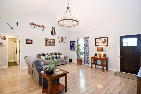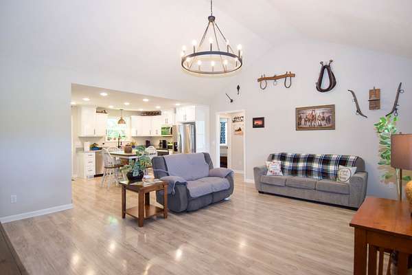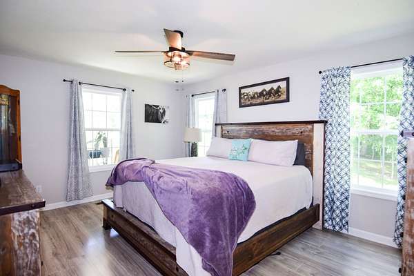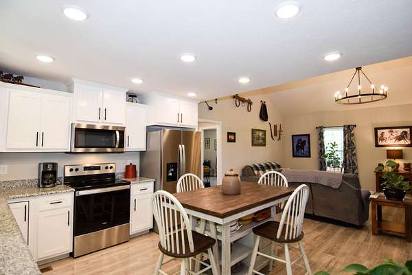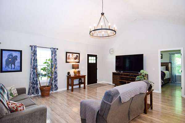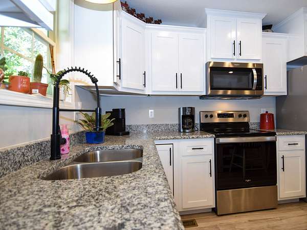 Est $1,956/moBeautiful one-owner home designer perfect!! Located on 2.53 acres amidst woods offering serenity and privacy. Private deck and Southern covered porch for peaceful living. Concrete driveway and parking pads, lovely sidewalk, privacy fencing and detached shed. State-of-art interior and amenities. Dual bedroom system, customized barn door pantry entrance, deluxe lighting fixtures, granite counters in kitchen and baths, Lake Shore pecan stone laminate flooring, ebony bath tile floors, panel interior doors. Everything to perfections!! Picturesque!