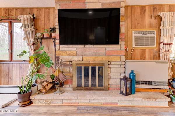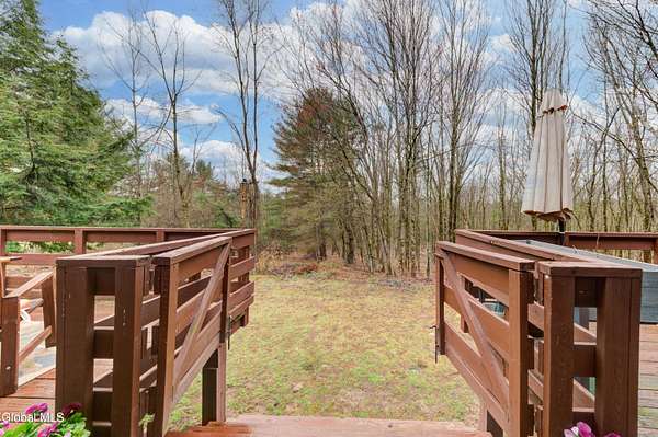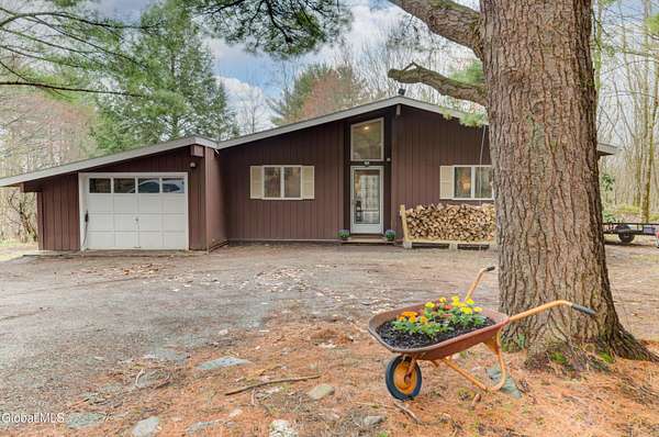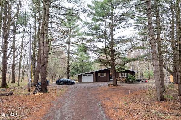 OPEN HOUSE SAT, 4/25 AND SUN, 4/26 12-2 PM. Discover peaceful, single-level living on 10 beautiful acres of private countryside. Set off the road for added privacy, this property features a spacious front yard, private driveway, and 10 acres of wooded land to enjoy year-round. This inviting 2-bedroom, 1 full bath home offers an open floor plan designed for both everyday comfort and effortless entertaining. The beautifully updated kitchen features white granite countertops, cabinetry, and stainless-steel appliances. Additional updates include luxury vinyl plank flooring throughout and an updated bathroom. Tons of natural light throughout. Oversized sliding glass doors lead to a spacious back deck that stretches across the rear of the home, creating the perfect setting to relax and take in the tranquil surroundings. A 1 car garage adds convenience, while the cozy fireplace and thoughtful layout make this home equally suited for entertaining guests or enjoying quiet nights in. The property also features a circular driveway with ample parking, perfect for guests, gatherings, or multiple vehicles. Included with the home is a 12,500/9,500-watt dual fuel gas and propane powered portable generator with remote electric start, offering added peace of mind year-round. Ideally located, just 40 minutes to Albany and Clifton Park, 20 minutes to skiing, 15 minutes to state parks and lakes, and close to hiking trails, fishing, snowmobiling, and everyday amenities. The septic was inspected and pumped (March 2026), new gutters (March 2026), a well inspection (March 2026), and the wood burning fireplace was professionally cleaned (March 2026). Schedule your showing today!