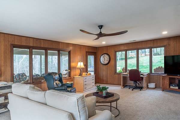 One of my favorite homes! Come and see this stunning executive home situated on just over 4 acres in the heart of Webster! Offering long range-year round views, a beautiful park-like setting backyard, a garden spot, paved easy access and only minutes from town. With 4 bedrooms and 3 full baths, you will have ample room to accommodate your small or large family! Boasting entertaining decks on both front and rear of the home and a large screened porch tucked in the trees, you will find entertaining a must. Many large windows and doors allow for natural light and stunning views from most rooms in the home! The 2 car "oversized" garage has lots of room for a workshop, storage, etc. A wood burning insert provides a cozy warmth while you enjoy the snow arriving from a distance. Dining/kitchen area offers a gas fireplace to enjoy will dining while facing the long range views. Wake up to the view from your primary ensuite with access to the "view" deck and a wood burning fireplace. Lower level offers additional bedroom, full bathroom and an oversized family room! Okay folks, I am out of space but there is much more to see so call me and let me show you this house!!!!