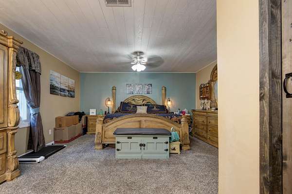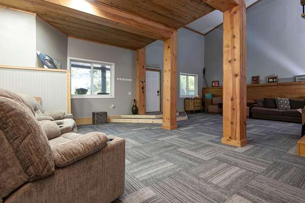 Tucked away at the back of a peaceful 7-acre lot, this property offers a private country retreat to call home. Inside, the main level features two spacious bedrooms, each with its own full en suite bathroom for ultimate convenience. There is an additional half bath on the main level.The kitchen opens seamlessly into one of the home's two living areas, which includes charming built-in bookshelves. A generous 3' x 16' pantry provides ample space for all your essentials.At the opposite end of the home, a second living area offers flexibility for a variety of uses--whether you're envisioning a home office, entertainment room, or creative studio. From here, a spiral staircase leads to the third bedroom upstairs, which also includes its own private en suite bath.Over the past three years, the home has seen numerous updates, including new water heaters, updated windows and doors, granite kitchen countertops, and new flooring. A new HVAC system was installed in 2022 to heat and cool the single story portion and upstairs bedroom. However, the current owners prefer using a window unit or space heater in the upstairs bedroom for more customized temperature control. The second living room is not heated and cooled by the HVAC system but is set up to add your own pellet stove.Outside, a 30' x 40' barn with four parking stalls provides plenty of room for storing equipment, vehicles, or recreational toys. The barn has electricity and includes a dedicated workshop area. Washer and dryer are included with the home.