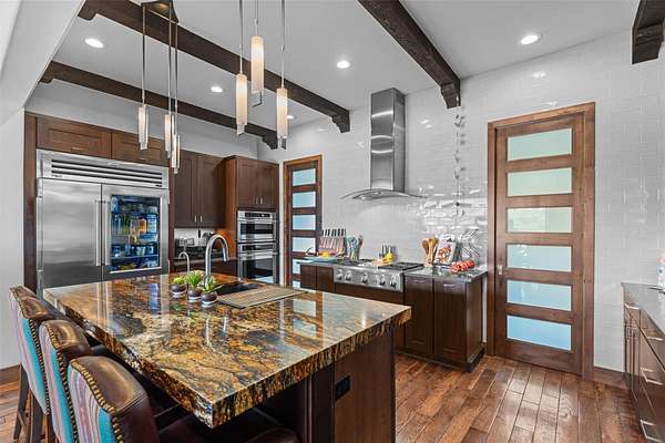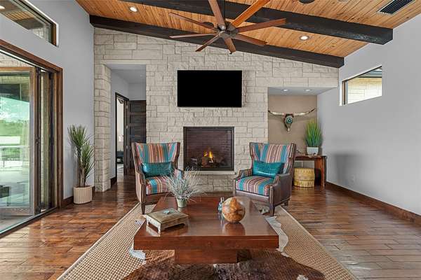 Rolling Hills Lake Estate is a rare Hill Country offering in Blanco, Texas, defined by water, privacy, and expanded acreage. Set on approximately 25+/- acres and centered around a stunning 3-acre private lake, this luxury estate offers a unique opportunity to own a larger Texas Hill Country retreat with added space and flexibility, just minutes from Blanco and convenient to both San Antonio and Austin. The main residence is designed for seamless indoor-outdoor living, featuring expansive glass doors that open to an infinity-edge pool overlooking the water. The layout is both functional and intentional, with dual primary suites and a central living space ideal for gathering. Additional improvements include a beautifully constructed log residence and two separate guest cabins, offering space for extended family or visitors while maintaining privacy across the property. A fully built-out shop with office space and a gym enhances the property's versatility and livability. An expansive secondary workshop greates additional opportunity for business use or hobby space. With expanded acreage, the property offers increased privacy, additional building opportunities, and a larger Hill Country footprint surrounding the lake. The 3-acre lake remains the focal point, creating scenic views and a setting that is both peaceful and increasingly difficult to find. Rolling Hills Lake Estate delivers a rare combination of luxury estate living, acreage, and water in the heart of the Texas Hill Country.