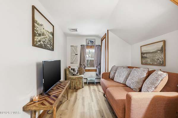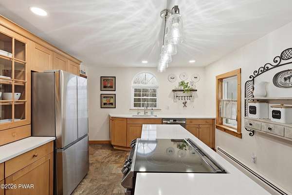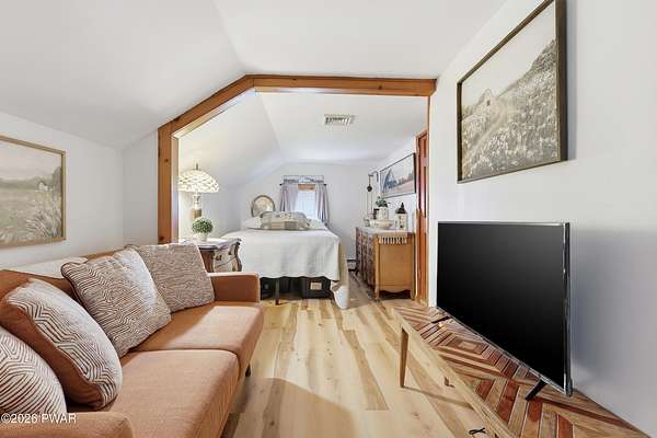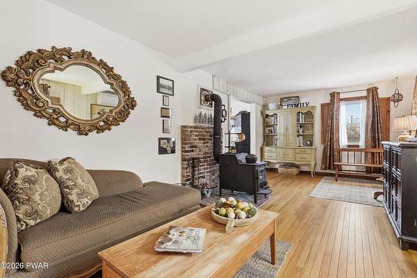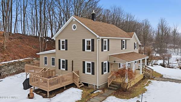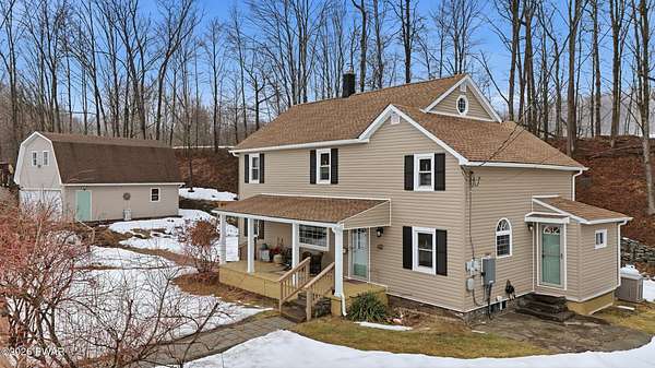 Looking for a Practically Brand New Farmhouse? Check this out! Set on 2.7 private acres in the beautiful countryside of Northern Wayne County, this completely restored 4 bedroom, 2 bathroom farmhouse blends classic farmhouse character with the comfort, efficiency, and design of a modern home. Conveniently located just 15 minutes to Hancock, NY and about 30 minutes to Honesdale, with the O&W Rail Trail just steps away, this property offers the best of country living in Northeastern Pennsylvania. As you arrive, the setting immediately stands out with open lawn, stone walls, gardens, and peaceful countryside views. The welcoming covered front porch invites you to sit back, relax, and enjoy the quiet surroundings. Step inside and you'll quickly see this is far more than a typical farmhouse renovation. The home has been extensively restored with a new roof, siding, windows, insulation, heating and cooling system, luxury flooring throughout, a beautifully designed kitchen with quartz countertops, new cabinetry and appliances, renovated bathrooms, and an upgraded water system. The main level offers fantastic open and comfortable living spaces with a great flow between the kitchen, dining area, living room and family room, creating the perfect layout for everyday living, gathering with friends, or entertaining guests. Upstairs the bedrooms are inviting and the bathroom features a large walk in tiled shower. Over the detached two car garage you'll discover a fantastic finished bonus space ideal for a home office, studio, gym, or guest area. Outside, the yard offers plenty of room to relax, garden, or entertain, and the nearby O&W Rail Trail provides miles of recreation for side by sides, biking, hiking, and snowmobiling. This home was thoughtfully restored as a long term residence, but a work relocation now makes it available. If you've been searching for a truly move in ready country farmhouse, this Northern Wayne County property is the one.
