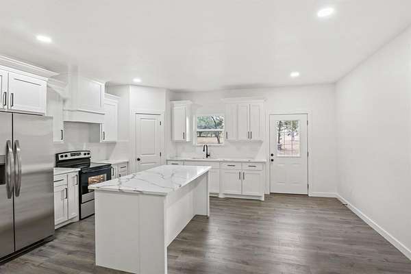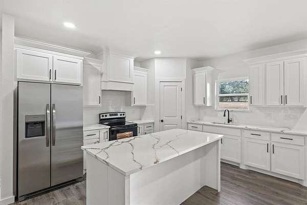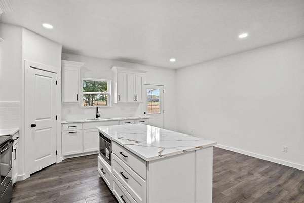 Enjoy the best of country living with the convenience of town just minutes away. This stunning new build sits on a serene 3 MOL acres partly wooded for added privacy and natural beauty. This home offers 3 bedrooms, 2 full baths, and a bright open floor plan that seamlessly connects the living, dining, and kitchen areas, perfect for modern living and entertaining. The stunning kitchen features quartz countertops, custom cabinetry, large island, decorative lighting, and striking backsplash. Spacious bedrooms provide comfort and style, while the covered front porch offers a serene spot to enjoy the beautiful scenery. This home combines modern elegance with the best of country living!