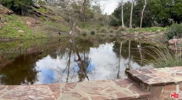 A Zen-Inspired Architectural Retreat in the Heart of Malibu. Discover one of Malibu's most distinctive architectural gems - an Asian-influenced, post-and-beam redwood and walnut sanctuary set on 10 private acres of rolling hills. This custom-designed retreat offers a truly tranquil lifestyle, where panoramic mountain views and a profound connection to nature create a serene, creative haven. The great room features soaring beamed ceilings and expansive windows that flood the home with natural light and frame the majestic landscape. The open kitchen offers Miele appliances while the primary suite is a private sanctuary with sweeping views and direct access to a large deck that wraps around the house, offering wide spaces for entertaining or lounging in the fresh air. Truly an ideal space to unwind, reflect, or ignite your next artistic endeavor, whether it be a screenplay, novel, album, or painting. A versatile loft adds flexibility as a studio, office, or additional sleeping area. Formerly restored by actor/director Vincent Gallo, the property exudes creativity and artistic energy. Outdoors, the grounds offer a graceful meditation ramada and matching pavilion bridge set over a seasonal stream; while meandering paths offer walks through your own canyon adorned with redwoods, oaks, seasonal waterfalls, and creeks. With zoning for light agriculture and equestrian use, there's room to expand, create, or cultivate. Ample parking makes entertaining and filming effortless, while proximity to Westlake Village, Malibu beaches, schools, shopping, lakes, golf, and tennis clubs ensures convenience without compromise. Owner has an expired permit for a 1,691sf art barn. Prop is not in Coastal Commission. Many possibilities abound.