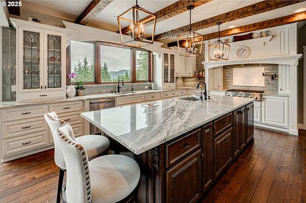 - Builtin Oven, Builtin Range, Builtin Refrigerator, Butlers Pantry, Dishwasher, Double Oven, Gas Appliances, Granite, Island, Microwave, Pantry, Pot Filler, Solid Surface Countertop, Stainless Steel Appliance, Water Purifier