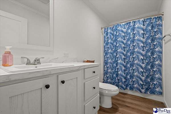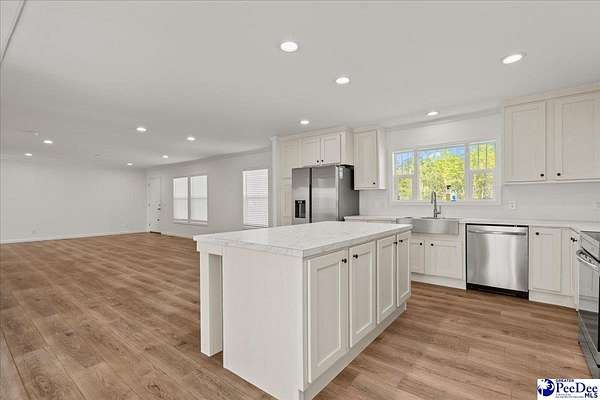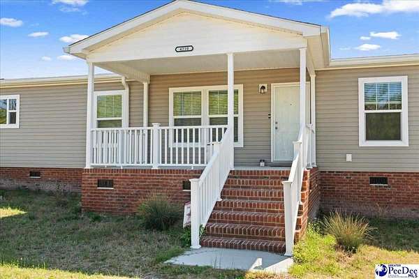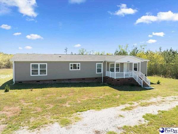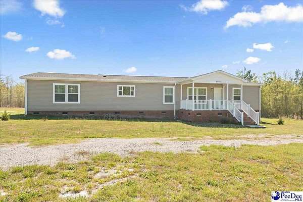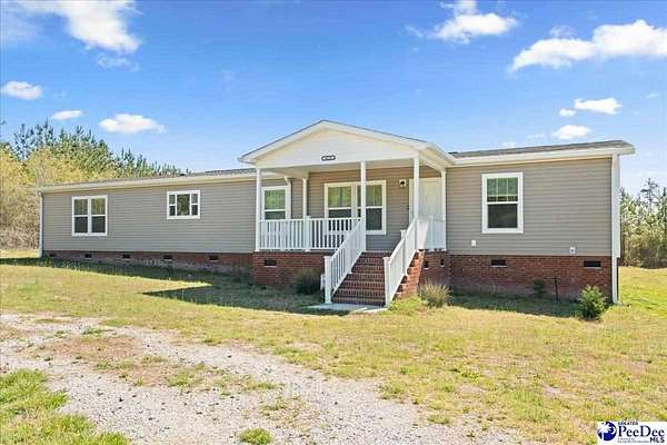Nestled on 7.31 beautiful acres in Marlboro County, South Carolina, this like-new manufactured home offers the perfect blend of space, comfort, and peaceful rural living. Featuring 4 bedrooms and 2 full bathrooms, the home boasts an expansive floor plan with wonderful living space designed for both everyday living and entertaining. Inside, you’ll find solid wood cabinetry, ceramic sinks, abundant storage, and a separate laundry/mudroom complete with a utility sink, along with a versatile area that could serve as a butler’s pantry or additional storage space. The kitchen features a working island with cabinet storage. It is also equipped with Samsung stainless steel appliances, and the home also includes a very young washer and dryer. Within the spacious, primary bathroom you will also find double closets, which add convenience and functionality. An additional flexible room provides endless possibilities as a second living area, formal dining room, playroom, or home office. Enjoy the outdoors from the 10x16 covered front porch and 10x20 back porch, perfect for relaxing and taking in the surrounding countryside. The exterior is equally impressive with a permanent, brick foundation and a circular drive with two separate exits. The hard work has already been done — the home has been expertly placed and set up, making it completely move-in ready. If you have been searching for beautiful rural living with acreage and a turnkey home, this is one you do not want to miss.