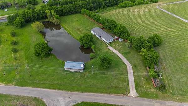 A Country Home with Acreage For Sale outside the City Limits at 4210 County Road 1152, Greenville, TX 75401. This spacious 5-bedroom, 3-bathroom single-family home is nestled on 2.709 acres of scenic land, featuring a tranquil private pond and a multi-use outbuilding, perfect for storage, hobbies, or a workshop.
