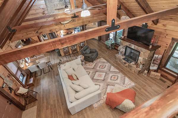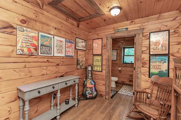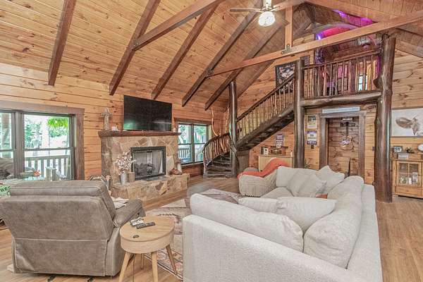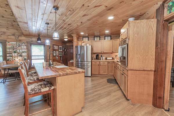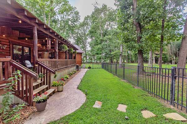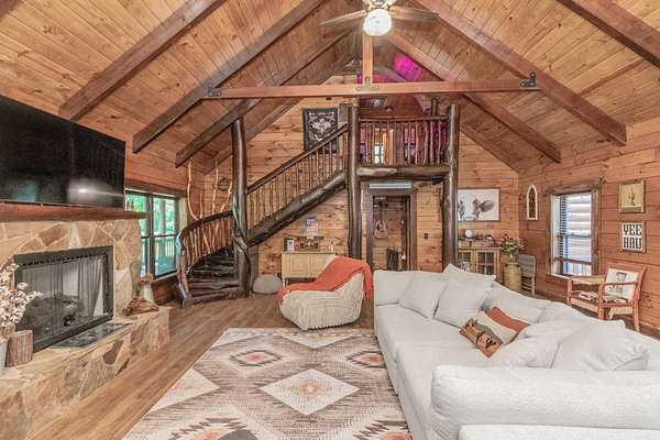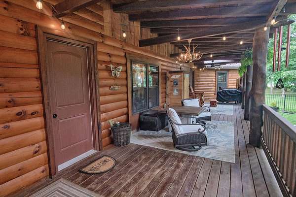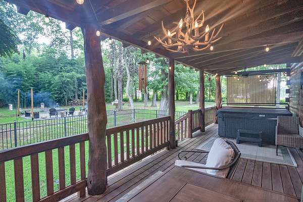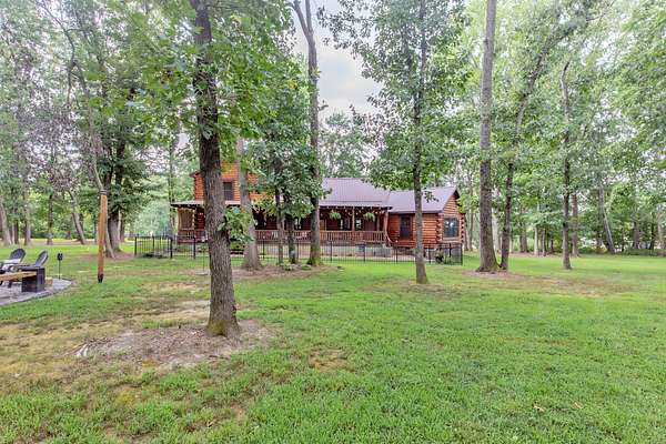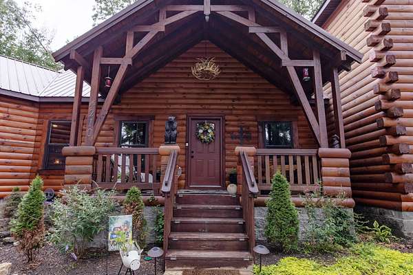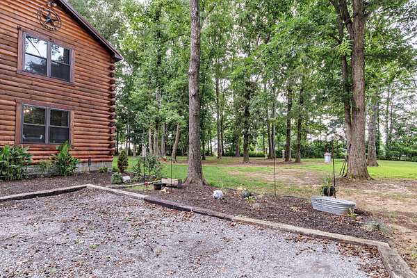 Beautiful custom log home on 3 plus acres. Lot has numerous trees and privacy. Located right out side city limits of White House. Master suite on main level, 2 bdrms, and full bath on second level w/loft area. Loft overlooks open living area. Rock fireplace in living room. Dining room with sliding door (currently used as a den). Spacious kitchen with island and eat-in area . Utility room/pantry off from kitchen. Too many custom features to mention, will have to view in person. 3 deer antler chandeliers, Circle drive. Unbelievable covered back porch overlooking private back yard, perfect fire pit area, 2 car garage. Covered front porch to greet your many guest. The staircase was made from trees from the property. A rare gem of a property! Tons of storage off the bonus room.