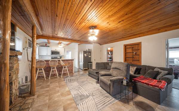 Welcome to your private river retreat just 5-10 minutes from Cuba, Missouri. This 2.84-acre gem sits along the pristine Meramec River, offering incredible floating, swimming, and fishing opportunities--catch largemouth and smallmouth bass right from the riverbank or a canoe. The property features a charming 1-bedroom, 1-bath log cabin with a durable metal roof, completely remodeled with new flooring, fresh paint, and thoughtful updates throughout. A full basement provides excellent storage space. Step outside and take in the peaceful surroundings from the wrap-around porch, including a beautifully covered and screened-in area--perfect for grilling, relaxing evenings, or simply listening to the gentle trickle of the river. A stairway leads directly down to the water, making fishing and swimming effortless. Private and secluded, this setting offers true tranquility with abundant deer and turkey frequently seen in the area. An additional foundation next door provides the opportunity to build a guest cabin, shop, or extra storage building if desired. Whether you're looking for a weekend getaway, vacation rental, or full-time riverside escape, this Meramec River property delivers unmatched natural beauty, recreation, and relaxation.
