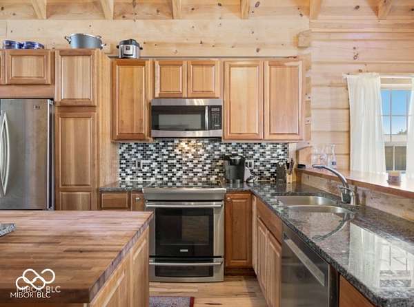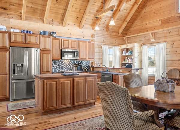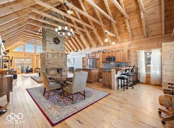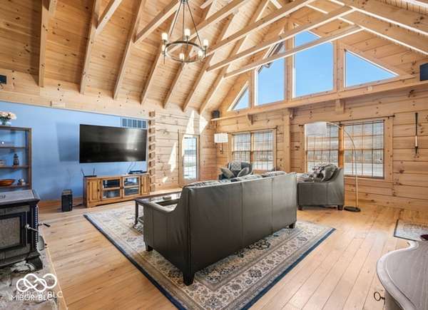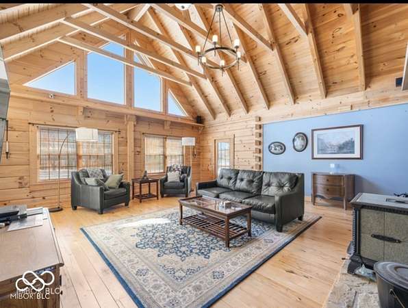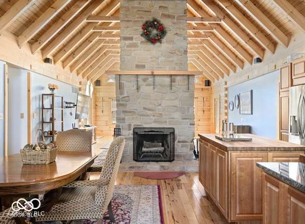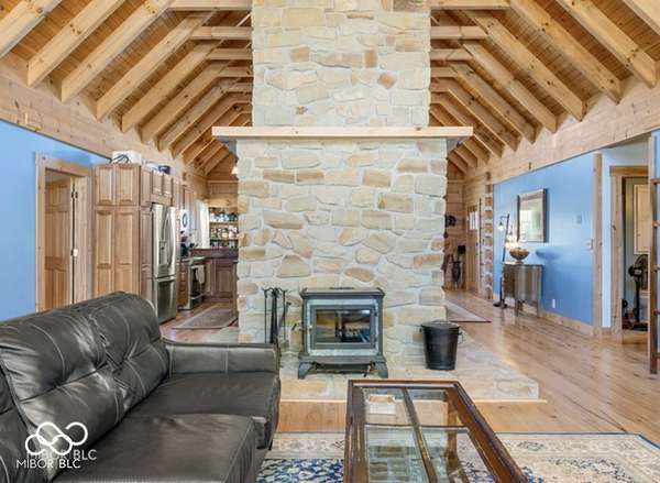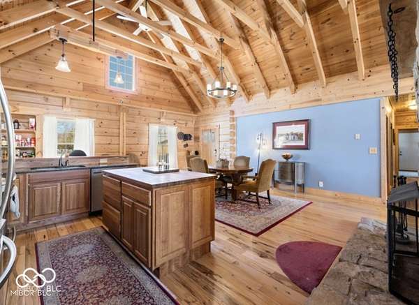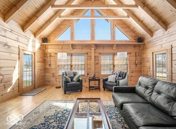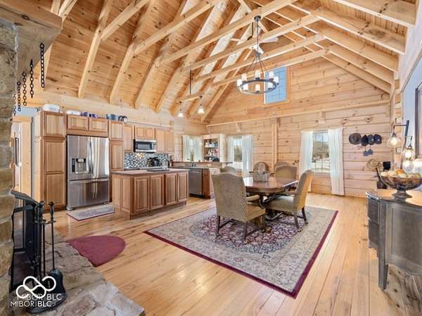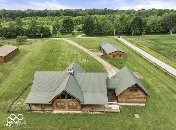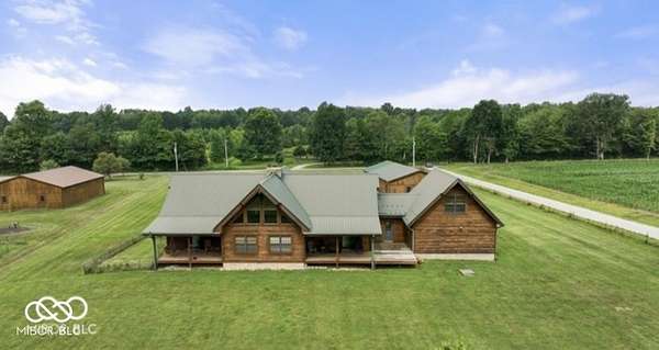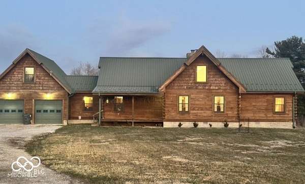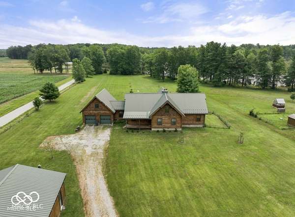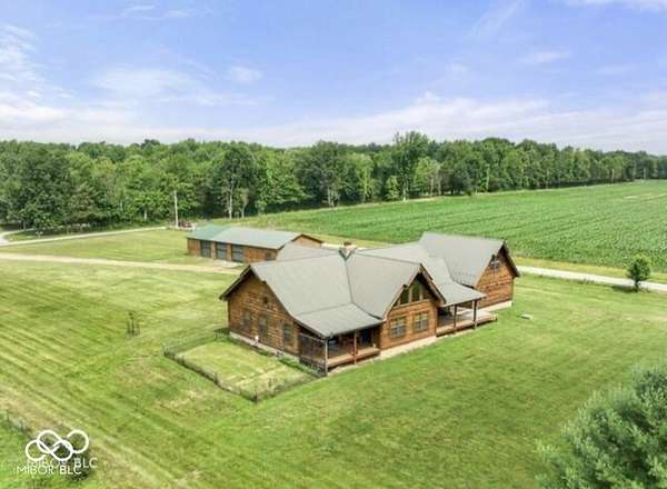 Welcome to your own slice of paradise. This stunning log home sits on a peaceful 22-acre lake, offering the kind of quiet, beauty, and privacy that's hard to find. Inside, you'll fall in love with the warmth and character-from the double-sided Brown County stone fireplace to the rich hickory floors and pine details throughout. The kitchen is both beautiful and functional, featuring maple cabinets, granite countertops, and a butcher block island made for gathering. Start your mornings watching the sunrise from the family room and end your evenings soaking in sunsets from the front porch. With 3 bedrooms, 2.5 bathrooms, and space to grow-including a bonus room ready for your ideas-this home fits both everyday living and weekend escapes. Outside, the possibilities are endless. A large barn with workshop space and utilities is perfect for projects or storage, while the private lake invites you to fish, kayak, or simply breathe it all in. This isn't just a home-it's where life slows down and memories are made