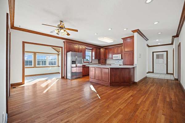 - Breakfast Bar, Ceiling Fan(s), Eat-In Kitchen, In-Law Floorplan, Primary Downstairs