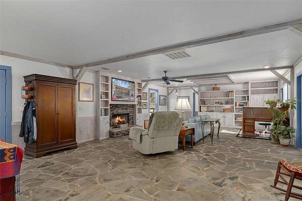 Discover a rare equestrian retreat in Pine Ridge Estates, one of Central Florida's most sought-after horse-friendly communities. Set on 2.22 fully fenced and cross-fenced acres with access to 28+ miles of riding trails, this custom residence blends rustic luxury with functional equine amenities, making the home perfect for those seeking a peaceful horse lifestyle with convenient access to modern conveniences.