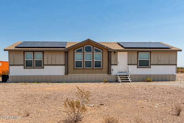 Adventure meets comfort in this energy-efficient home set on a sprawling 2.8-acre lot with sweeping mountain views! Solar is completely paid off with average utility bill under $50 dollers! Inside, vaulted ceilings, open and interactive layout, soft carpet, and a bright, cheerful living room make it easy to feel right at home. Kitchen is a true charmer, boasting a sea of white cabinets, skylights that pour in natural light, a roomy pantry, generous counter space, and a peninsula with a breakfast bar perfect for weekend brunch or late-night baking. Your primary suite offers an ensuite with double sinks, a soaking tub, and a walk-in closet. Outside, the possibilities are endless for creating a dream garden with pool, horse property or leave natural desert scape with panoramic mountain views