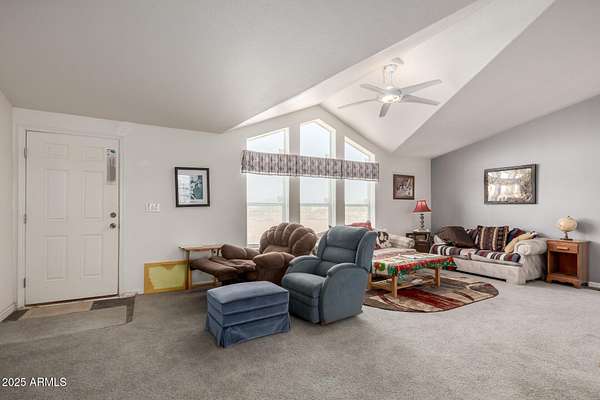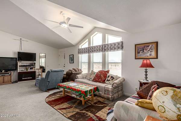 Adventure meets comfort in this energy-efficient home set on a sprawling 2.8-acre lot with sweeping mountain views! Solar is completely paid off with average utility bill under $50 dollers! Inside, vaulted ceilings, open and interactive layout, soft carpet, and a bright, cheerful living room make it easy to feel right at home. Kitchen is a true charmer, boasting a sea of white cabinets, skylights that pour in natural light, a roomy pantry, generous counter space, and a peninsula with a breakfast bar perfect for weekend brunch or late-night baking. Your primary suite offers an ensuite with double sinks, a soaking tub, and a walk-in closet. Outside, the possibilities are endless for creating a dream garden with pool, horse property or leave natural desert scape with panoramic mountain views