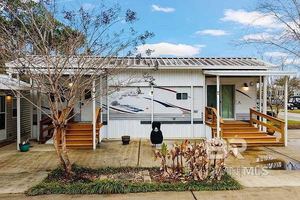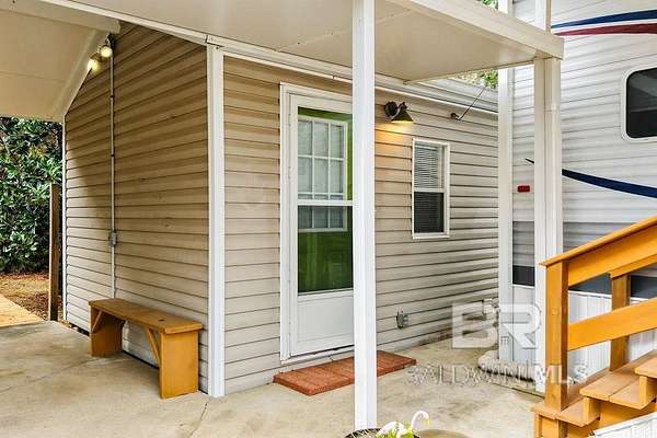 4211 Azalea Street is a one of a kind two lot tucked-away the Azalea Village community of Orange Beach. The two side by side lots are connected by a shared metal roof that creates a covered seating area in the center, giving the property a relaxed, courtyard-style layout that works well for gathering or just enjoying the space.One lot includes a workshop or storage building along with ample parking, including room for an RV, a golf cart, or additional cars. The second lot is equipped with a guest cottage that features its own living area, bathroom, laundry facilities, and kitchenette, making it ideal for visitors or extended stays. In addition, a Jayco travel trailer is already in place, offering a bedroom, full kitchen, bathroom, and living area, along with two porches for extra outdoor space.The Azalea Village neighborhood is the definition of a hidden gem, with access to community amenities such as a pool, laundry facilities, and shared boat and trailer storage, all with an unbeatable convenient location, just a golf cart ride away from The Wharf. Buyer to verify all information during due diligence.