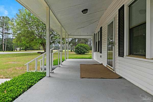 Some homes just have a way of catching your eye every time you pass by - the kind people point to and say, "I've always loved that house." This is one of them. Tucked into a picture-perfect setting in Bratt, Florida, this charming 2-bedroom, 2-bath country home feels like something out of a storybook. A classic white exterior, beautifully landscaped yard, and towering pines surrounding the property create an idyllic backdrop that makes you slow down and take it all in. The wide front porch sets the tone for the entire home - the kind of place made for rocking chairs, morning coffee, and long conversations in the evening breeze. Inside, the home offers a very functional and comfortable layout with a spacious living room and a vaulted kitchen that makes the heart of the home feel open, welcoming, and full of natural light. Just off the carport, the utility room provides everyday convenience with easy access to the backyard, making it perfect for coming in after working in the yard, tinkering in the shop, or simply enjoying country life. Outside, a detached shop offers plenty of room for storage, hobbies, or all the toys that come with living in the country. Homes in this desirable Bratt location rarely come along with this kind of setting and charm. It's the kind of place you can move right into, settle in on the porch, and start enjoying the quiet beauty of country living from day one.