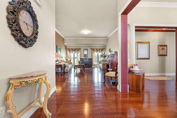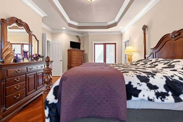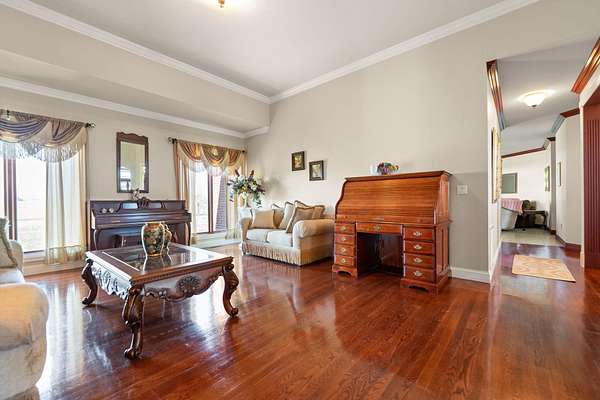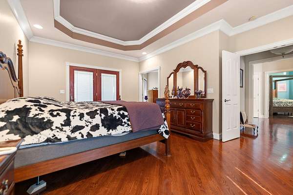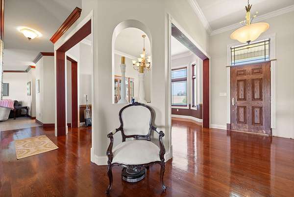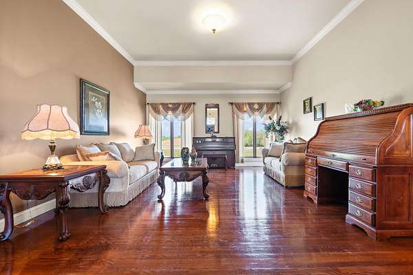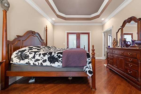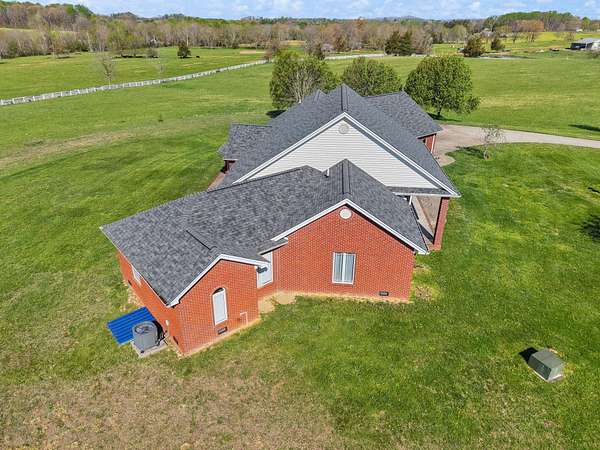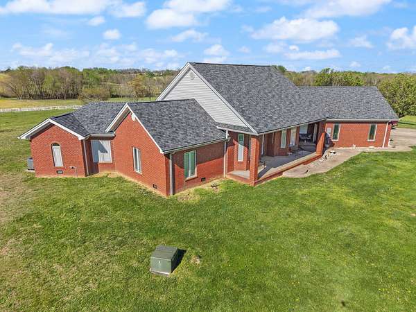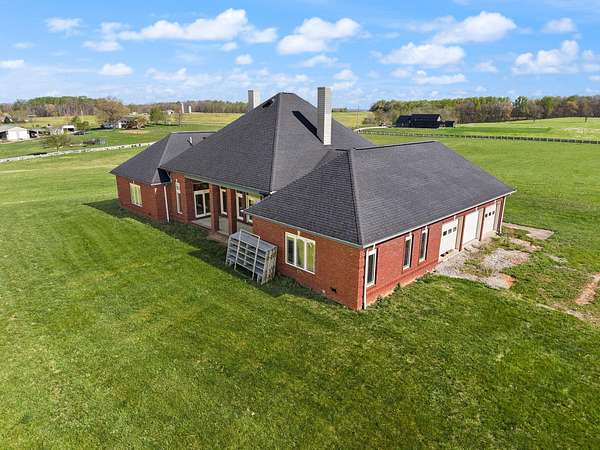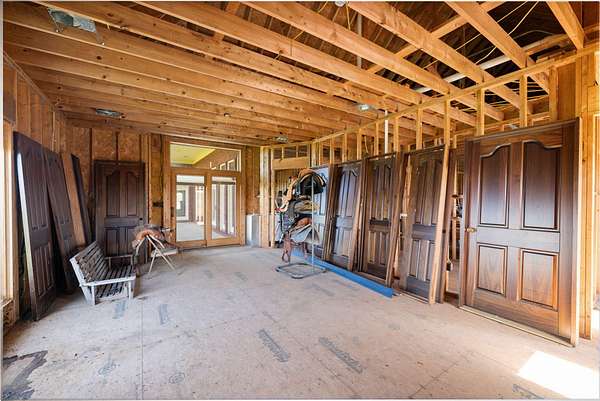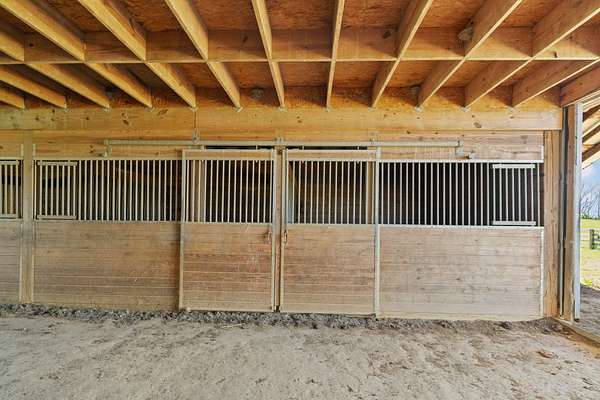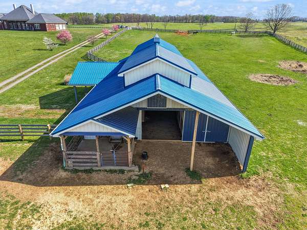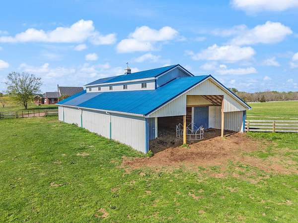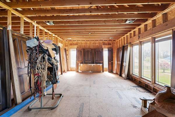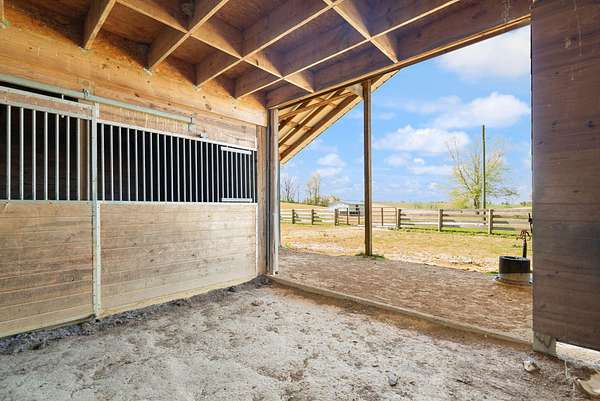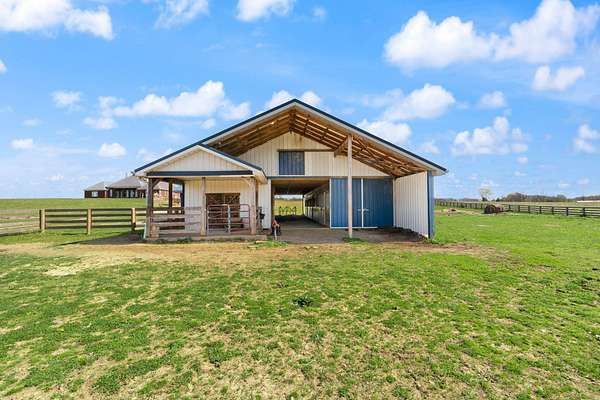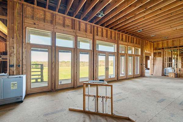 Rare opportunity to own a stunning 30-acre estate featuring multiple custom builds by renowned builder Tim Childers. This unique property includes a beautifully finished home, an additional framed residence ready for completion, and a well-equipped horse barn-perfect for equestrian living or multi-generational use. The finished home showcases exceptional craftsmanship with hardwood flooring, high and trey ceilings, smooth surface finishes, and elegant custom trim throughout. The kitchen is designed for both function and entertaining, featuring granite countertops, a flat cooktop, built-in microwave, and an oversized bar with seating for six. The spacious primary suite offers a private sitting area and en-suite bath, while thoughtful details such as roll-out windows with built-in blinds, elongated windows, decorative wall cutouts, and abundant natural light elevate the living experience. The property also includes a charming peacock house/chicken coop and underground electric service. Equestrian amenities include a custom horse barn with five 12-ft stalls, concrete entry flooring, wood-accented interior walls, water access nearby, and a covered exterior area with drive-up access-allowing convenient feeding without exposure to the elements. A second home on the property, also by Tim Childers, is already framed and ready for completion. It features Pella windows, installed plumbing and electrical by Epperson, 3 bedrooms plus a bonus room, 3.5 baths, and a 3-car garage. Wood doors are already on-site and stored within the home. Endless possibilities await with this one-of-a-kind property offering space, quality, and versatility.