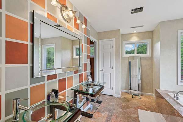 This amazing, bright, and cheerful home offers complete privacy surrounded by nature, yet it's still conveniently located near all the conveniences you need- shopping, dining and all things Goodlettsville and downtown Nashville. Soaring ceilings, gleaming hardwood floors and huge windows allowing tons of natural light run throughout the home creating a welcome and inviting space. Decks on every level bring the outside in extending the indoor living space to its full potential. Amazing kitchen with custom cabinets, granite countertops, island with seating, tile backsplash and gas cooktop! Second floor Primary suite is a true retreat on its own level with private balcony, sunny reading nook and ensuite with jetted tub w. fireplace, dual vanities and tile shower. Secondary bedrooms on the main level offer their own private deck access and shared bathroom. Recent updates include a finished basement space for extra living and/or storage space. Laundry room with utility sink with extra room and 2 car attached garage. Beautiful place to call home! Tour today!