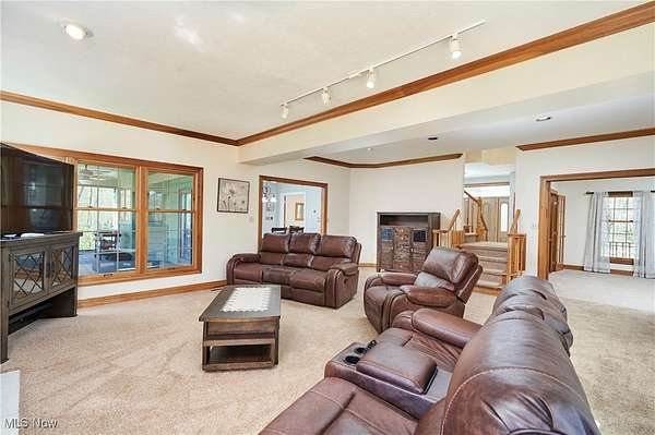 Rare Opportunity in Revere Schools! Nestled on a scenic 6-acre lot, this 4- to 5-bedroom, 3.5-bath home offers peaceful privacy with modern comforts, making it an ideal retreat from the daily hustle. The freshly updated chef's kitchen features granite countertops, brand-new stainless steel appliances, a walk-in pantry, and new flooring. Step outside to a covered deck overlooking a new patio and firepit, perfect for entertaining or unwinding in nature. Inside, enjoy a cozy family room with fireplace, private office, formal living and dining rooms, and a convenient mud/laundry room with half bath. Upstairs you'll find Brazilian Koa wood floors throughout, an expansive owner's suite, and three additional bedrooms all with walk-in closets. A newly finished bonus room offers flexible space for a playroom, studio, or guest retreat. The walkout lower level adds over 900 finished square feet with a rec room, workout area, and ample storage, plus it's plumbed for an additional full bath and laundry. Updates include a freshly painted exterior (Fall 2024), new patio and shed (2022), all-new light fixtures, new water softener and humidifier (2022), commercial-grade hot water heater (2022), smart garage door openers, and 1 GB high-speed internet. Outside, you'll find a circular driveway, 3.5-car garage, shed, greenhouse, and a certified septic system (July 2024). Nearby are the Oviatt House, Richfield Heritage Preserve with horse trails, and St. Bernard Golf Club. A truly rare find combining land, location, and lifestyle. Don't miss your chance to call this exceptional property home!