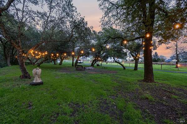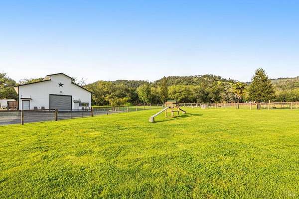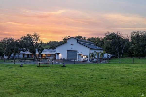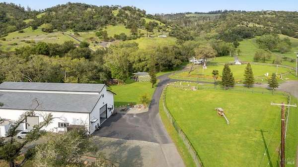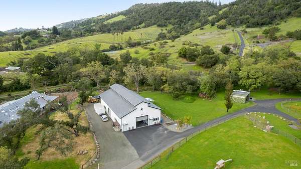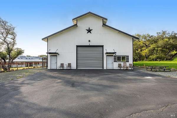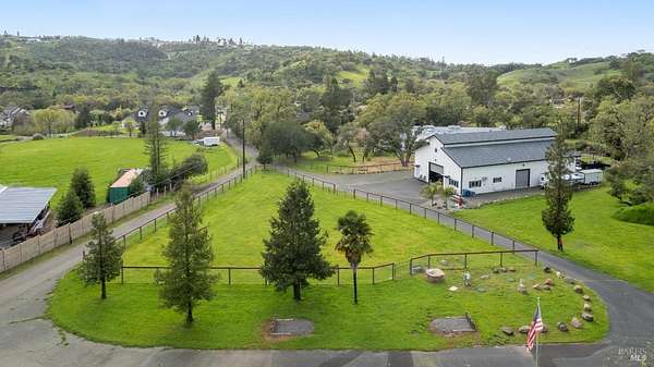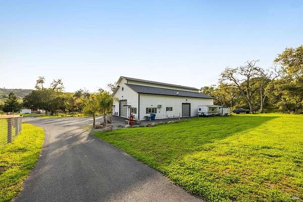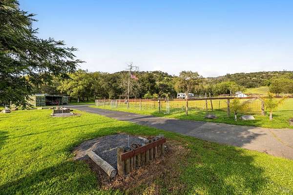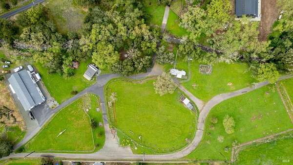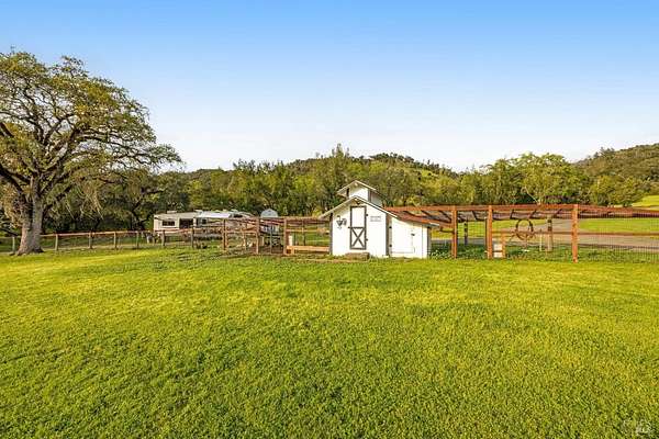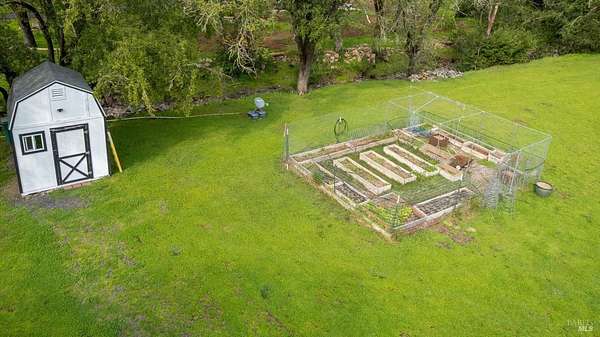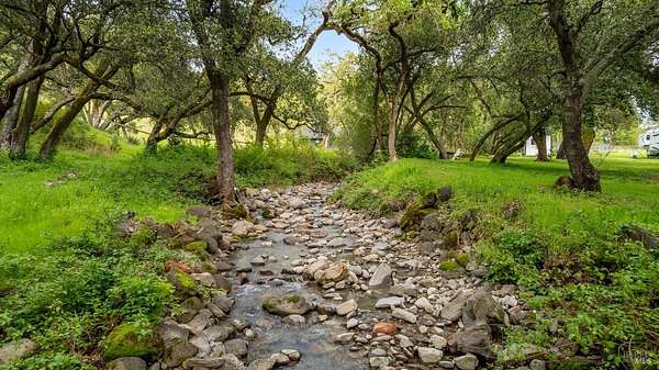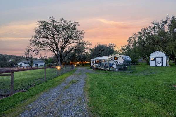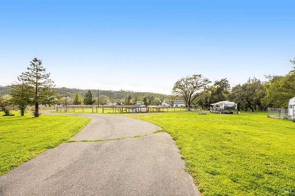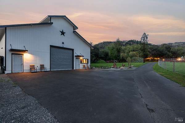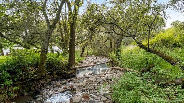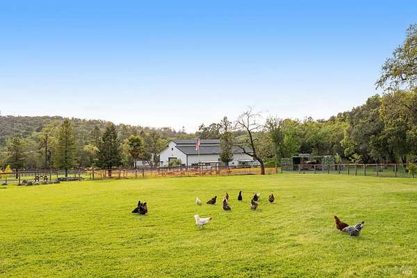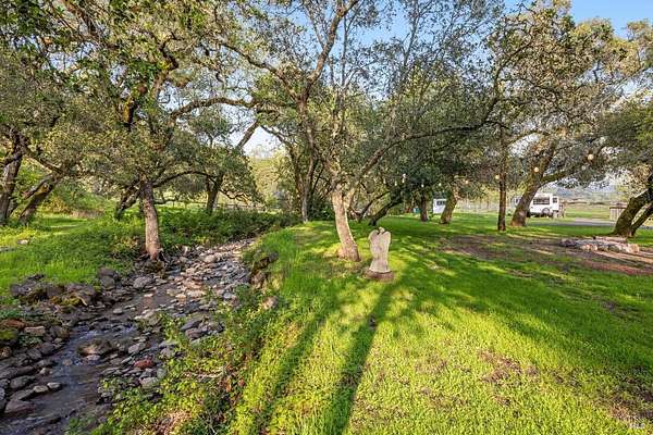 Stunning, 5.05 acre with HUGE 3,910 SQ.FT SHOP on property within an exclusive gated community surrounded by larger homes providing a unique canvas to build your future dream home, farming or potential for future horse/equestrian property. Enjoy the tranquil sounds from the seasonal creek and lush landscaping.The impressive Ag/Barn is 3,910 Sq. ft. 46' x 85' structure featuring three convenient roll-up garage doors and a grand RV-sized electric roll-up door, ensuring effortless space for vehicles & storage. Inside, explore expansive flex space on both levels, adaptable to your needs, and a huge attic, measuring approx. 8' x 85', perfect for all your storage needs. Several fenced areas are thoughtfully prepped for future growth. An orchard paradise awaits with an array of fruit trees with purple figs, plums, pears, citrus fruits, and edible grapevine varieties. Raised garden beds invite you to cultivate fresh vegetables and live an organic lifestyle. Happy chickens occupy an adorable chicken house. Stroll beneath the shade of a magnificent oak tree, where where a swing awaits to capture joyful moments, amidst garden lighting that transforms outdoor spaces into serene evening retreats. Scenic, rare property with an opportunity to create your dream home/lifestyle.