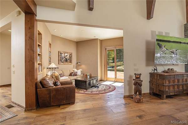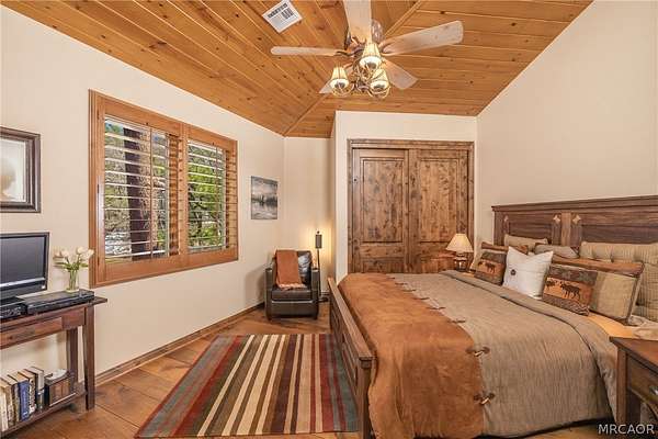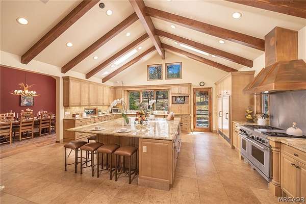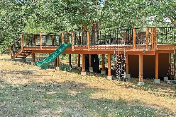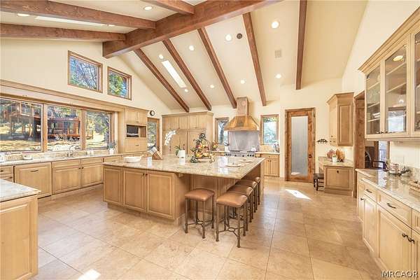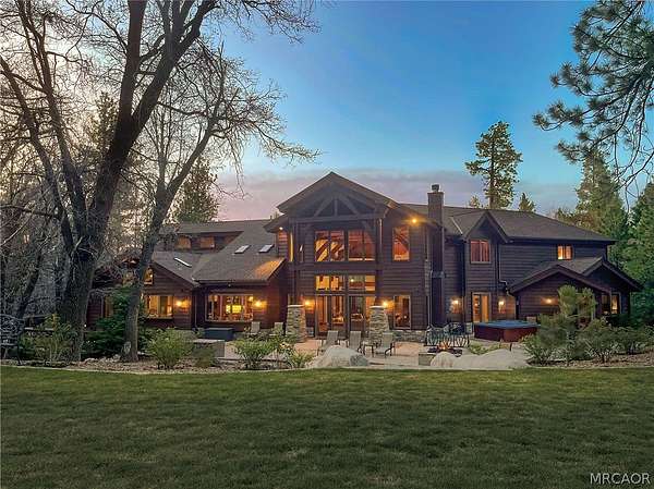 Experience the pinnacle of Big Bear mountain living in this stunning architectural masterpiece, perfectly situated on a massive 2.74-acre lot backing to National Forest-all just 3 mins from Snow Summit Resort! This iconic, unparalleled estate seamlessly blends luxury craftsmanship with an incredible "fun factor," making it THE premier four-season retreat. Upon entering, you are instantly transported by a breathtaking wall of Anderson windows inviting the beauty of the outdoors in. Peace and serenity are found in the many wonderful living spaces, while the entertainment options are unmatched. The home features a massive game room with pool table, TV area, expansive wet bar, wood-burning fireplace, and a huge game closet for endless indoor fun. Accommodations are plentiful, including a spectacular 10-bed bunk room with dedicated bathrooms, perfect for large gatherings. The exquisite chef's eat-in kitchen boasts a granite island with plenty of seating for family and friends and is a fantastic space for food prep and entertaining. This cook's kitchen is fully loaded with a Wolf range, Subzero refrigerator & freezer, Viking warming oven, hot water pot filler, and 2 Bosch dishwashers. Retreat to the primary suite, which offers a cozy sitting area w/ private fireplace and a luxury bathroom featuring a jetted tub and a massive steam shower. Superior quality is on display throughout with premier plank flooring, custom wrought iron, custom lighting, tankless water heaters, and 4 forced-air furnaces for zoned comfort. The outdoor living is truly world-class, featuring a massive concrete patio/deck, outdoor spa, built-in BBQ, and a lava rock fire pit. The private "adventure park" includes frisbee golf, a horseshoe pit, putting green, a kids' playhouse w/rooftop deck, and even a 4-kid zipline! An oversized 3-car garage with storage room provides ample space for gear. Bonus: a private well serves the home & landscaping-NO water bill! Come see Big Bear living at its finest!