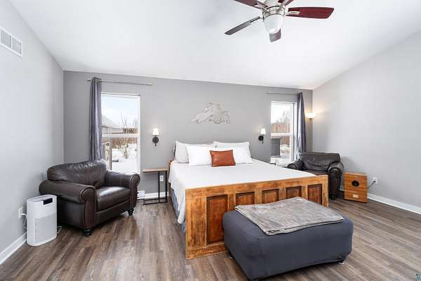 4215 Midway Rd is a gorgeous 3+ bedroom, 3 bathroom home located in Hermantown. This well cared for home sits on over 5 beautiful acres just 5 minutes from schools, and less than 20 minutes from downtown Duluth. Vaulted ceilings, large windows, and an open floor plan give this home a spacious, wide-open feel. This old farmhouse has been gutted to the studs & completely remodeled, including a new foundation, windows, siding, mechanicals and two large additions. Home will boast a private primary bedroom, with a spacious closet, a 3/4 bathroom and the laundry in close proximity. The upstairs will have 2 of the bedrooms, office and full bathroom. The back deck is private, secluded and very welcoming with a build in outdoor grilling area and a hot tub to entertain and relax - schedule a showing today!