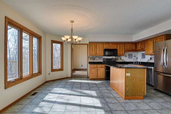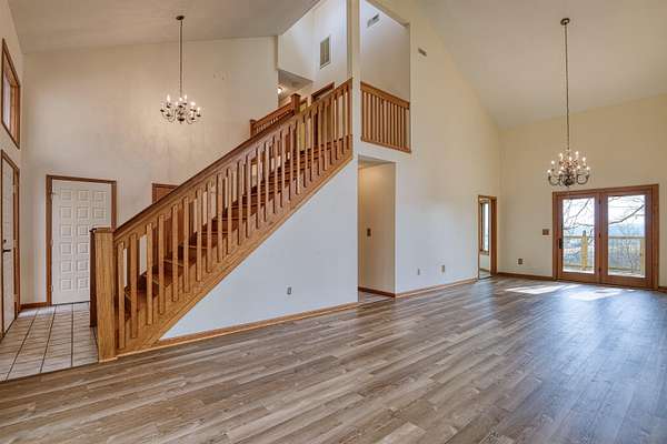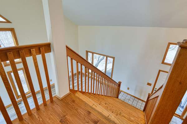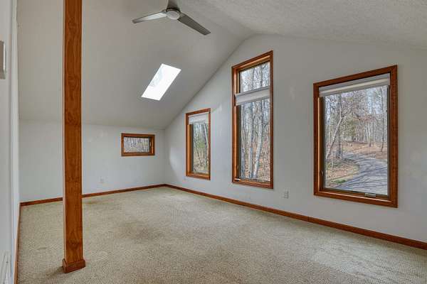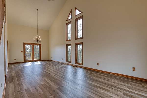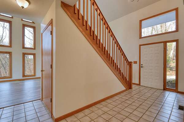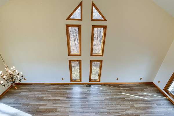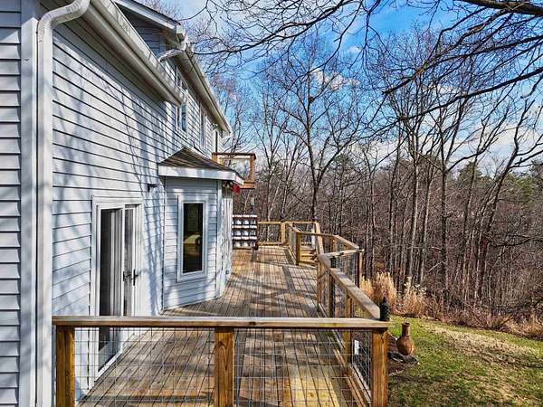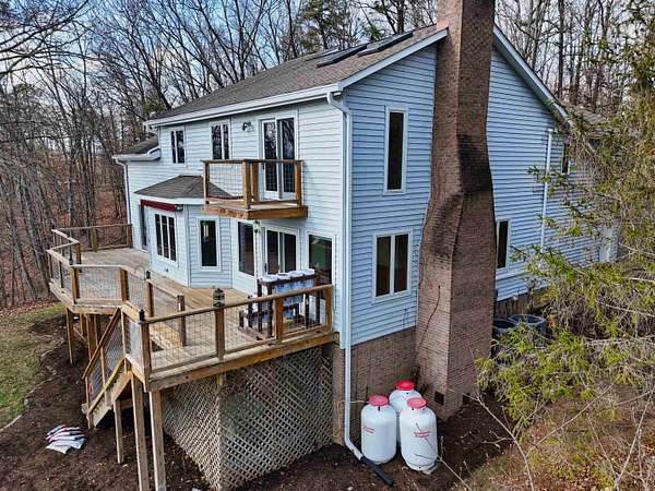 Privacy & a serene setting at the end of a cul-de-sac awaits you! As you enter this inviting home take in the towering ceilings & natural light. BUT before touring this home, head to the back deck. Delight in the river views, wildlife & the encompassing surroundings. Drag yourself back in & take in all the improvements & upgrades (since 2011) that have been completed by the seller. Quality wood windows & glass doors, granite countertops, upgraded master bath w/walk in shower, newer flooring in open dining & living rooms & more! Kitchen includes a pantry, work island & opens to family room. Family room enhanced by the gas log fireplace, & a full bath complete this level. Venture upstairs to an exquisite primary suite, w/it's own balcony, private bath, skylights, a walk thru closet leads to a laundry room & a special room for studio, exercise, playroom, you pick! A full unfinished basement also has laundry hookups, pellet stove, work bench. You just need to be here & enjoy!