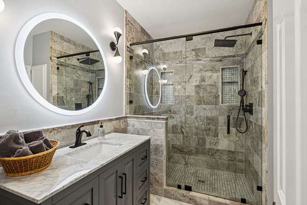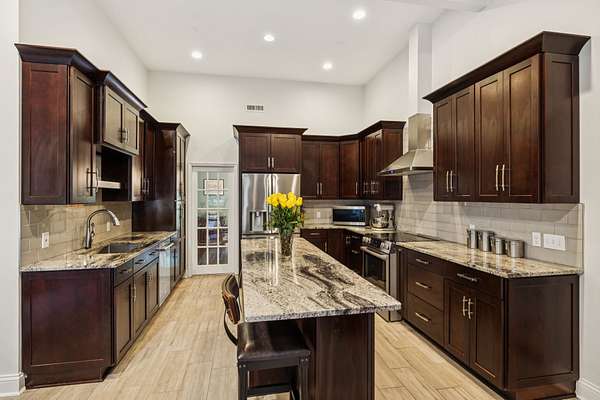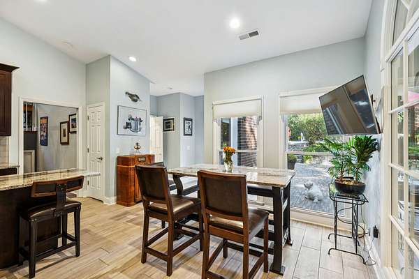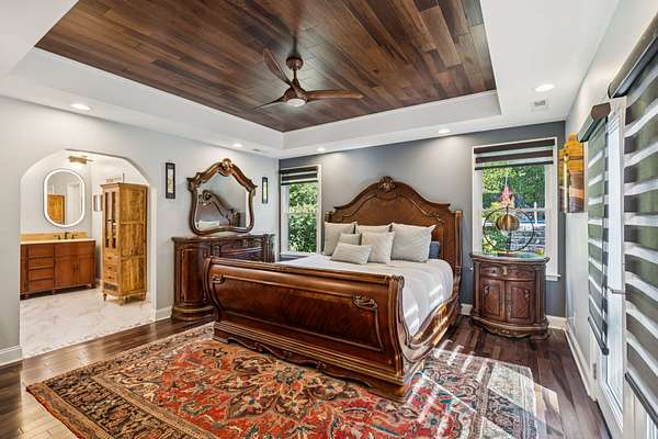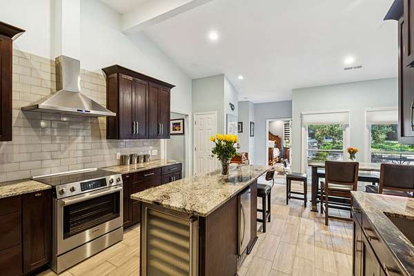 Inside, you'll find stunning Brazilian pecan floors throughout, giving the home a warm and elegant feel. The kitchen includes a charming breakfast nook and updated appliances including Viking wine cooler, ice machine, microwave and compactor. The bathrooms have been fully renovated with no expense spared. The property is also surrounded by lush landscaping, offering a serene and meticulously maintained environment.