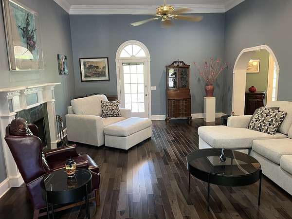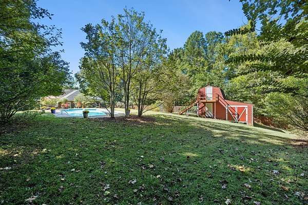 New Price! This charming home features a classic Southern front porch overlooking three beautifully treed acres, perfect for those who value peace and privacy. Tucked away off the road, this home is a secluded haven with a luxurious in-ground swimming pool and an expansive outdoor entertainment area, complete with a cozy outdoor fireplace.