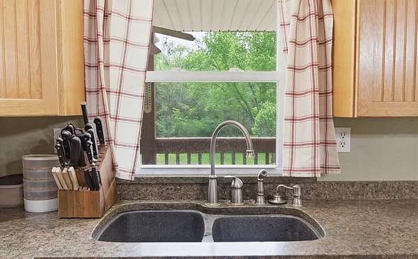 From Hwy 61 N, take exit 210 B and turn right. Go through the round a bout onto Hwy P. Stay on Hwy P and home is on the right. OR Follow GPS
