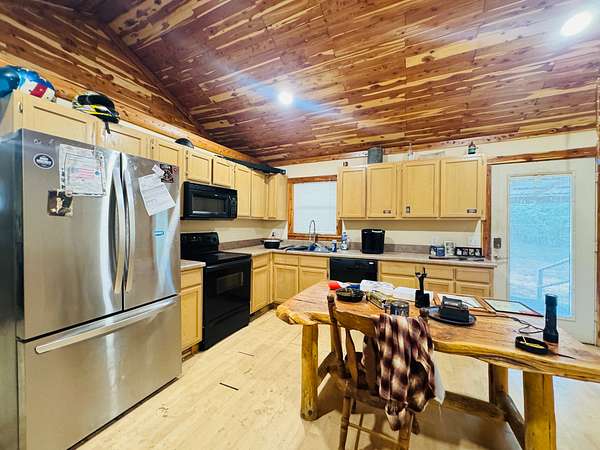 This 3-bedroom, 1-bathroom cabin offers 1,262 sq. ft. of living space with central heat and air for year-round comfort. All appliances convey, making it move-in ready and easy to start enjoying right away.