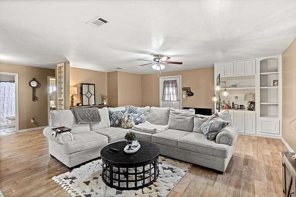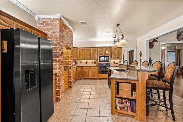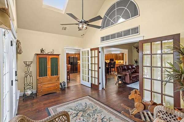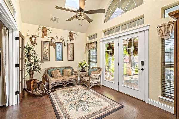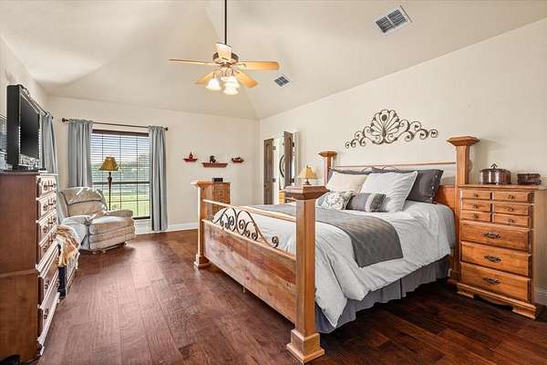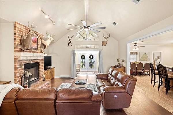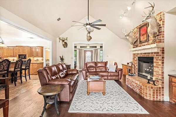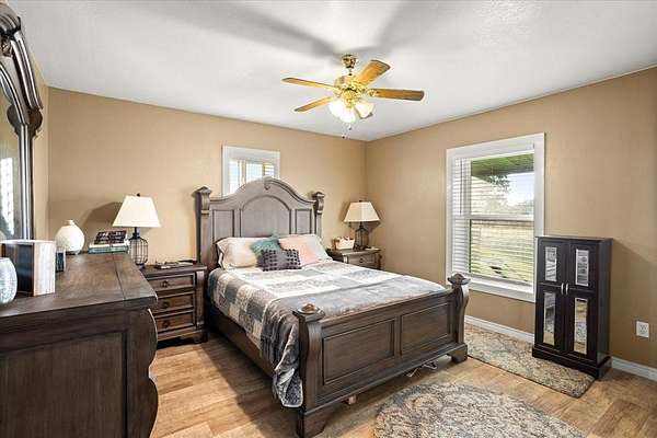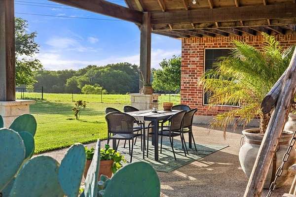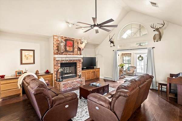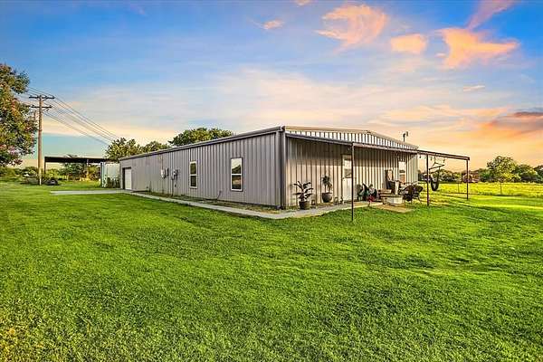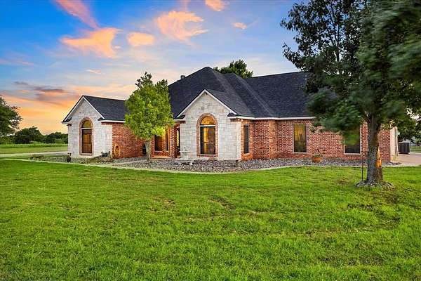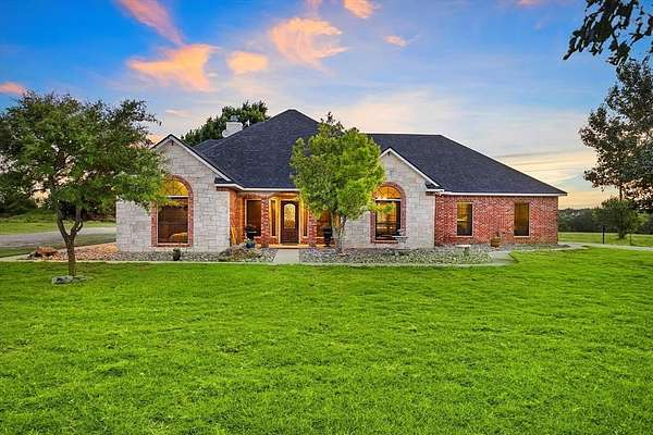 PRIVATE COUNTRY RETREAT ON NEARLY 38 ACRES! At the end of a long private drive, this one-owner custom home offers peaceful seclusion with beautiful sunset views and a tree-lined creek. A fully spray-foamed 40x80 shop with an attached 1,200 sq ft apartment (2 bed, 1 bath) offers rental income potential or multigenerational living. The 2,826 sq ft main house features a one-story split floorplan with 4 bedrooms and 3 full baths (4th bedroom perfect as office or flex space). The stone and red brick exterior pairs with a brand-new roof for timeless curb appeal. Inside, you'll find new hardwood floors, a welcoming sunroom, and a large kitchen with a brick surround cooktop, center island, and abundant cabinetry--truly the heart of the home. A storm shelter in the garage with concrete walls and door provides peace of mind. Enjoy outdoor living under the covered patio and cedar pergola. Paid-off solar panels, recent water heaters, cattle pens, and thoughtful updates complete this incredible country property. An ag exemption for property taxes is currently in place, adding even more value to this rare opportunity!