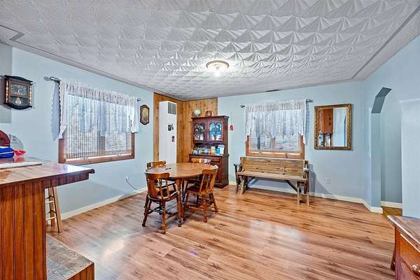 - Balcony, Barb Wire Fence, Covered Deck, Covered Front Porch, Fence, Mature Trees, Partial
